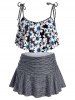 Plus Size Floral Ruffle Polka Dot Tankini Swimwear