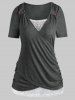 Plus Size Colorblock Ring Linked V Back Tunic Tank Top