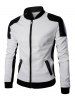 Color Block Zipper Snap Button Stand Collar Padded Coat For Men