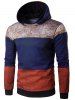 Hooded Color Block Spliced Distressed Print Spliced Hoodie