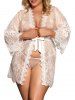 Plus Size Lace Eyelash See Thru Sexy Wrap Robe Set
