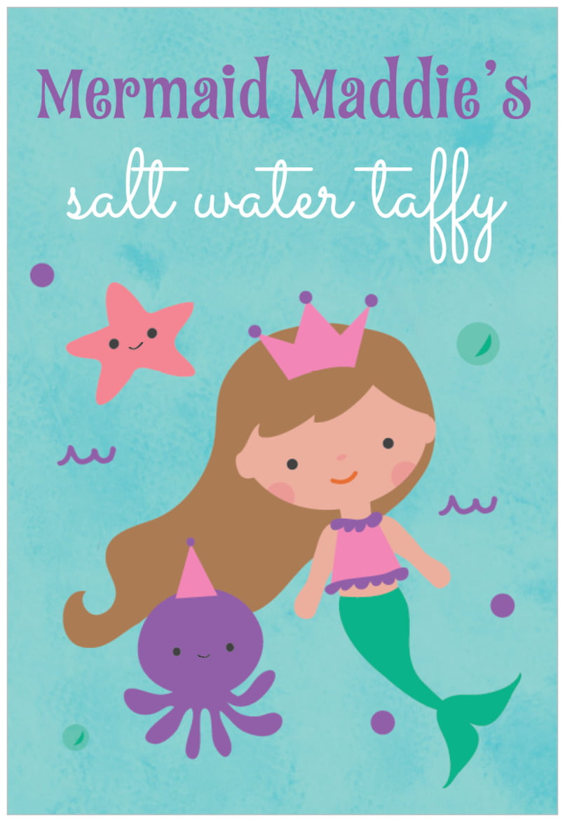 custom rectangular labels - bright pink - mermaid (set of 250)