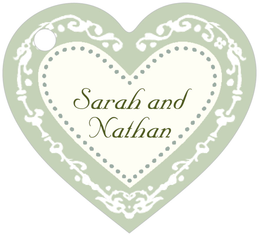 Custom Small Heart Tags - Sage - Filigree