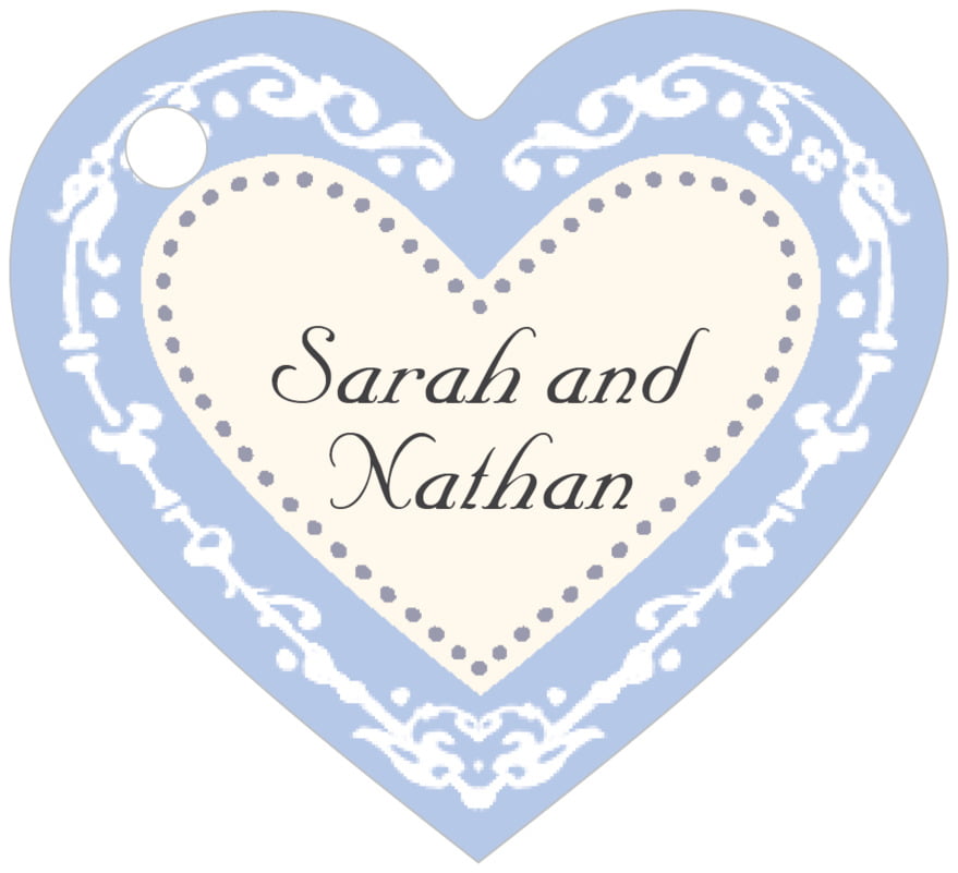 Custom Small Heart Tags - Periwinkle - Filigree
