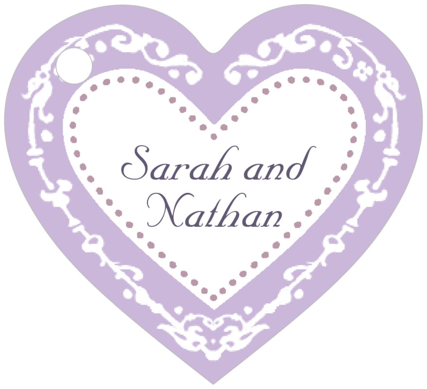Custom Small Heart Tags - Lilac - Filigree