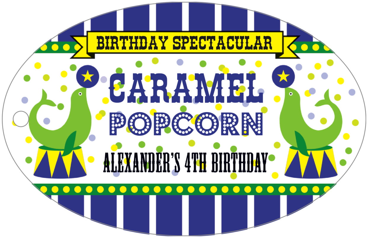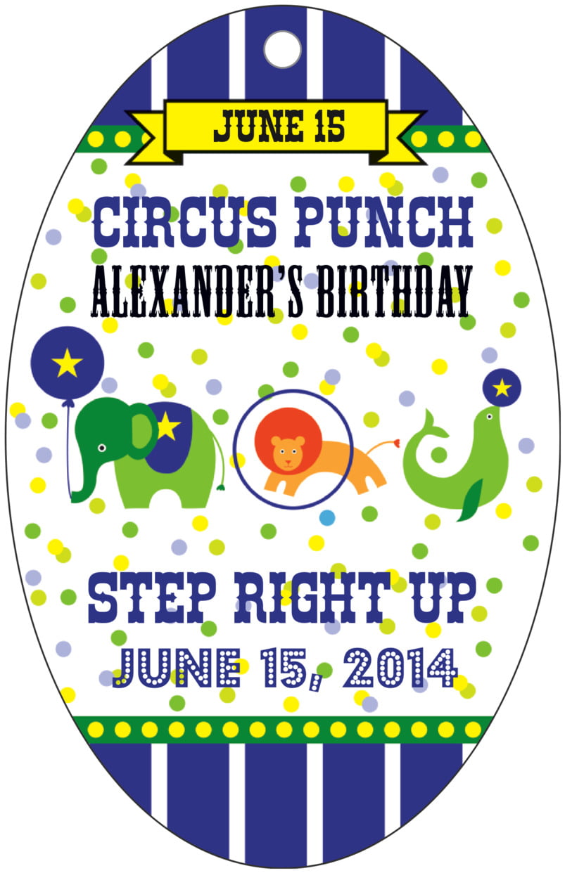 tall custom labels - deep blue - circus (set of 14)