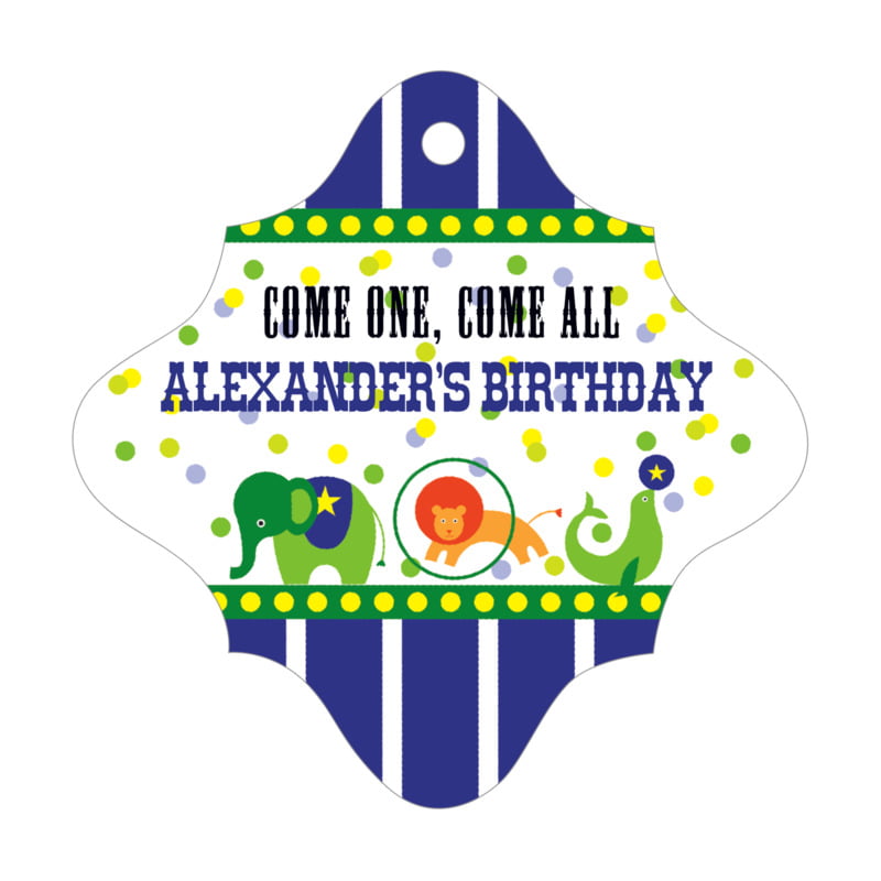custom scallop labels - deep blue - circus (set of 20)