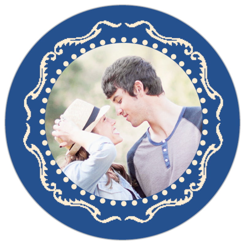 custom small circle labels - deep blue - rococo spring (set of 250)