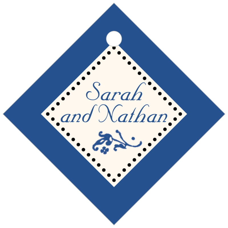Custom Small Diamond Tags - Deep Blue - Filigree