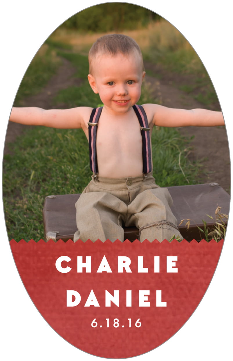 Custom Large Oval Labels - Deep Red - Chevron Edge