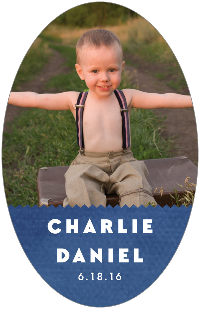 Custom Large Oval Labels - Deep Blue - Chevron Edge