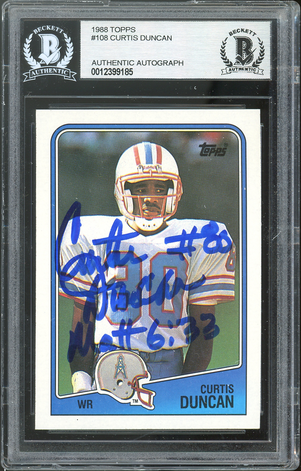 Oilers Curtis Duncan Matt 6:33 Authentic Signed 1998 Topps #108 Card BAS Slabbed
