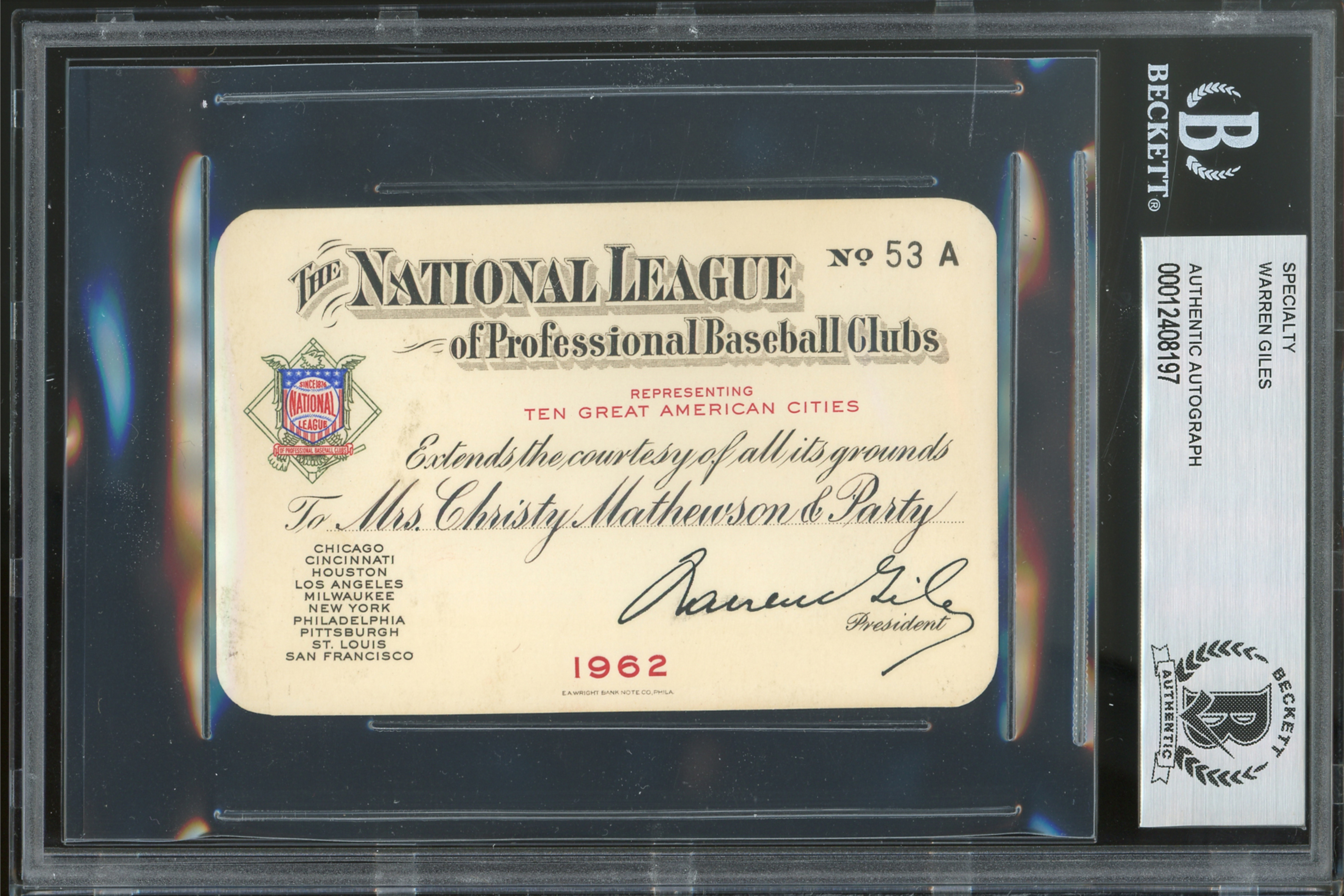 Warren GIles Signed 2.6x4.25 NL Baseball Clubs All Access Grounds Pass BAS Slab