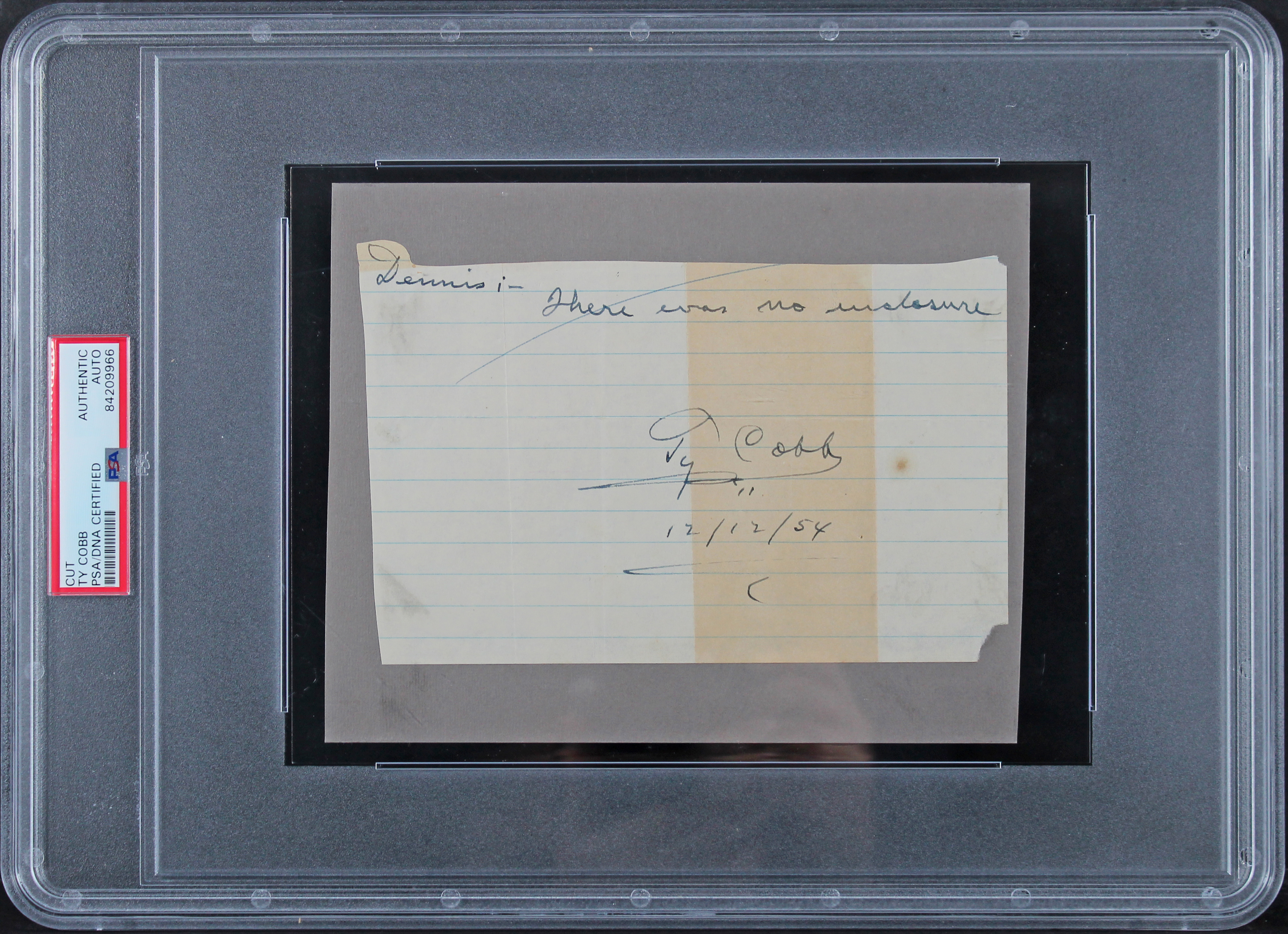 Tigers Ty Cobb 12/12/54 Authentic Signed 4.25x6.75 Cut Signature PSA/DNA Slabbed