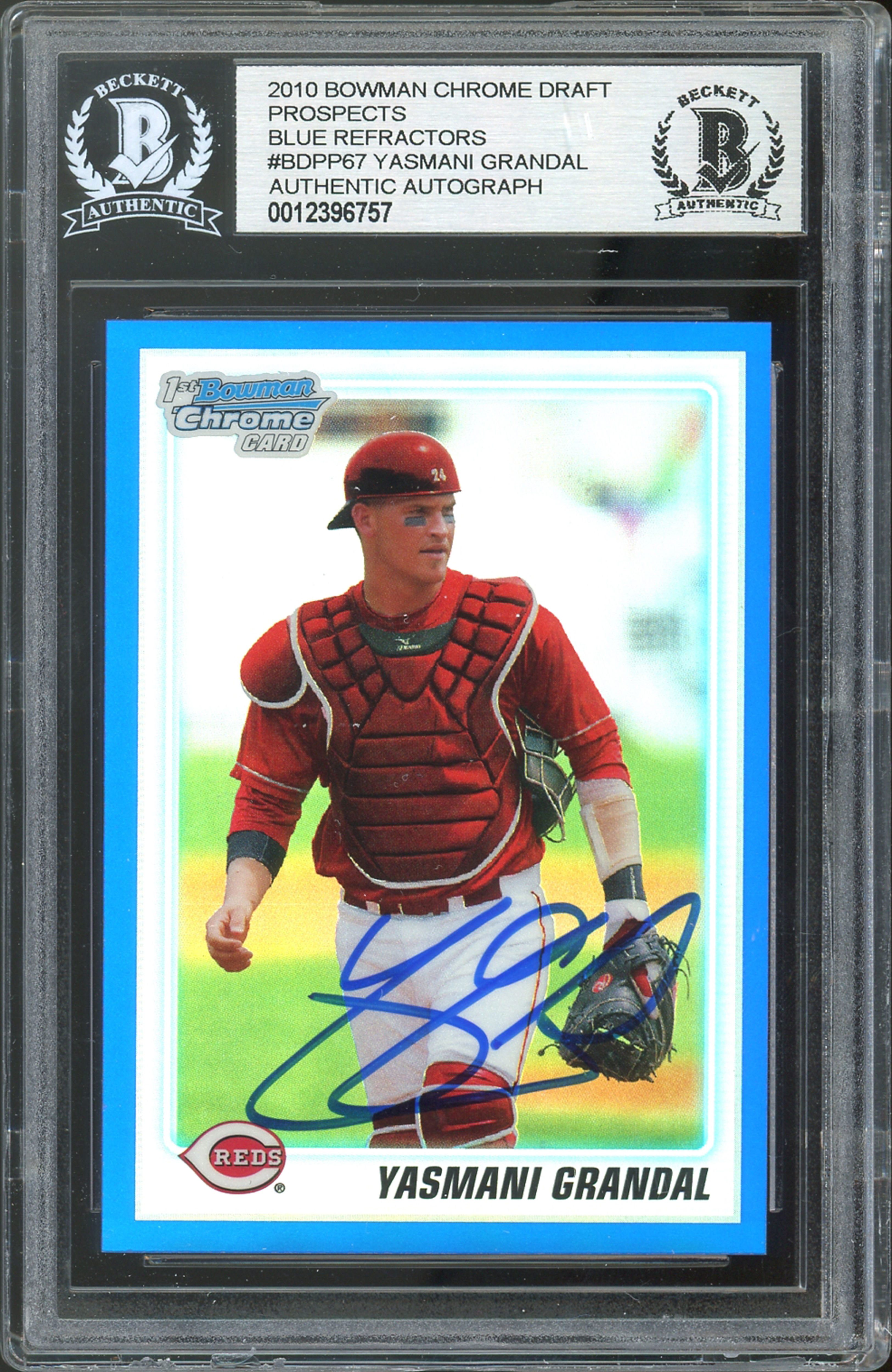 Yasmani Grandal Signed 2010 Bowman Chrome DP Refractors #BDPP67 RC Card BAS Slab