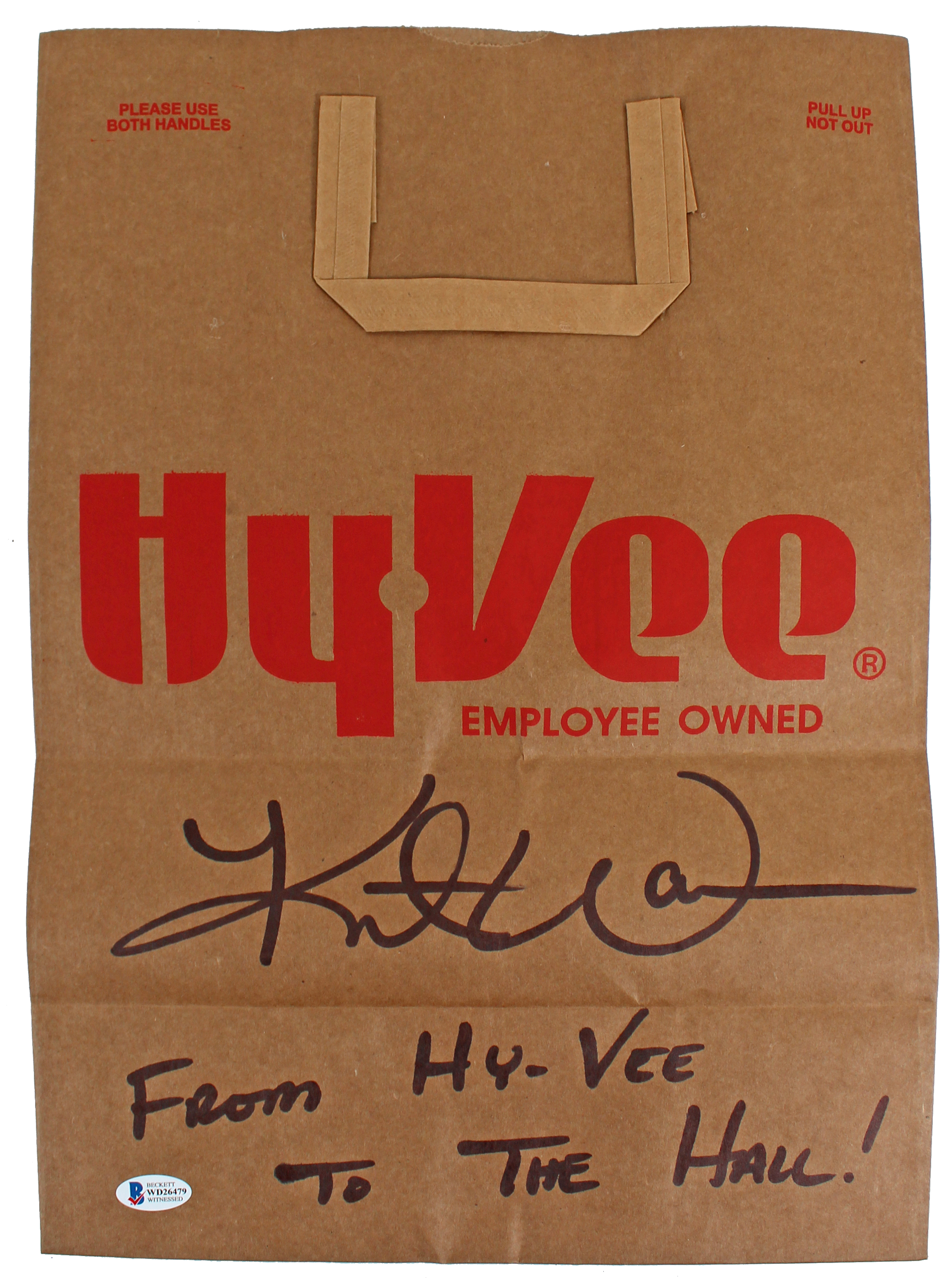 Rams Kurt Warner "Hyvee To Hall" Authentic Signed Hyvee Grocery Bag BAS Witness