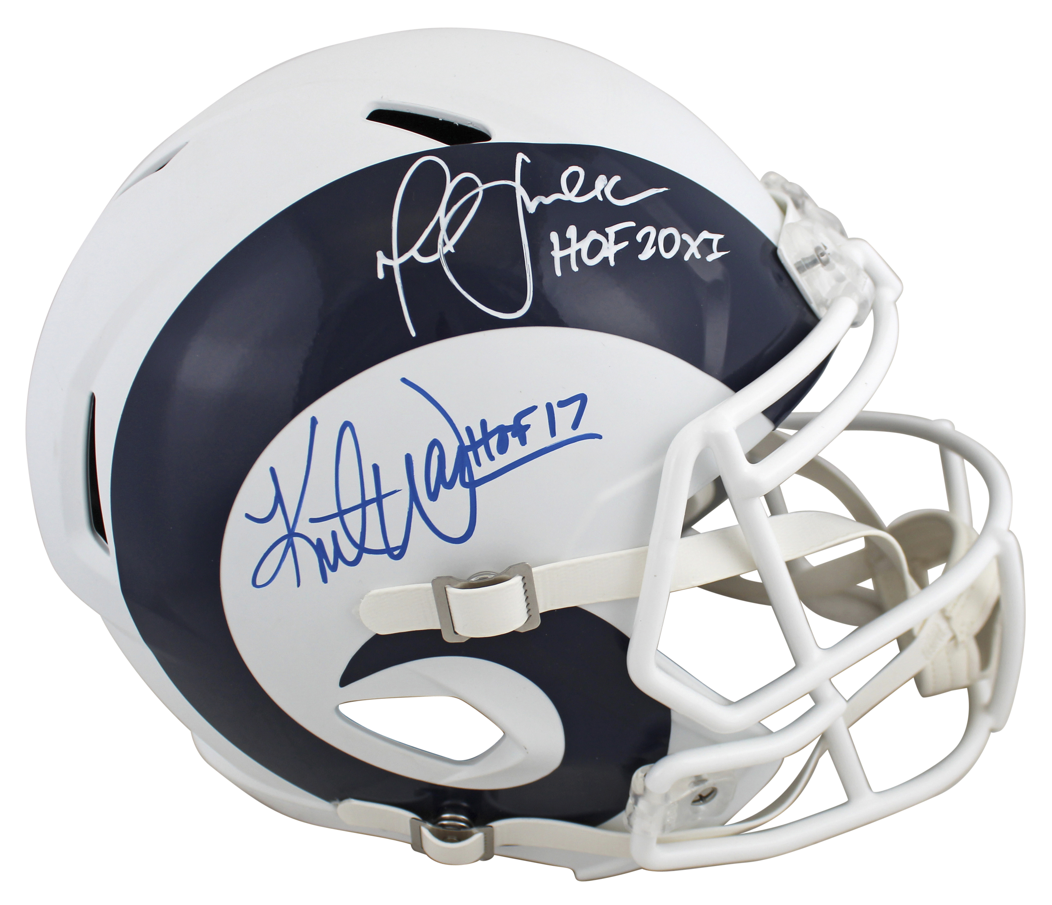Rams Kurt Warner & Marshall Faulk Signed Eclipse Full Size Speed Rep Helmet BAS