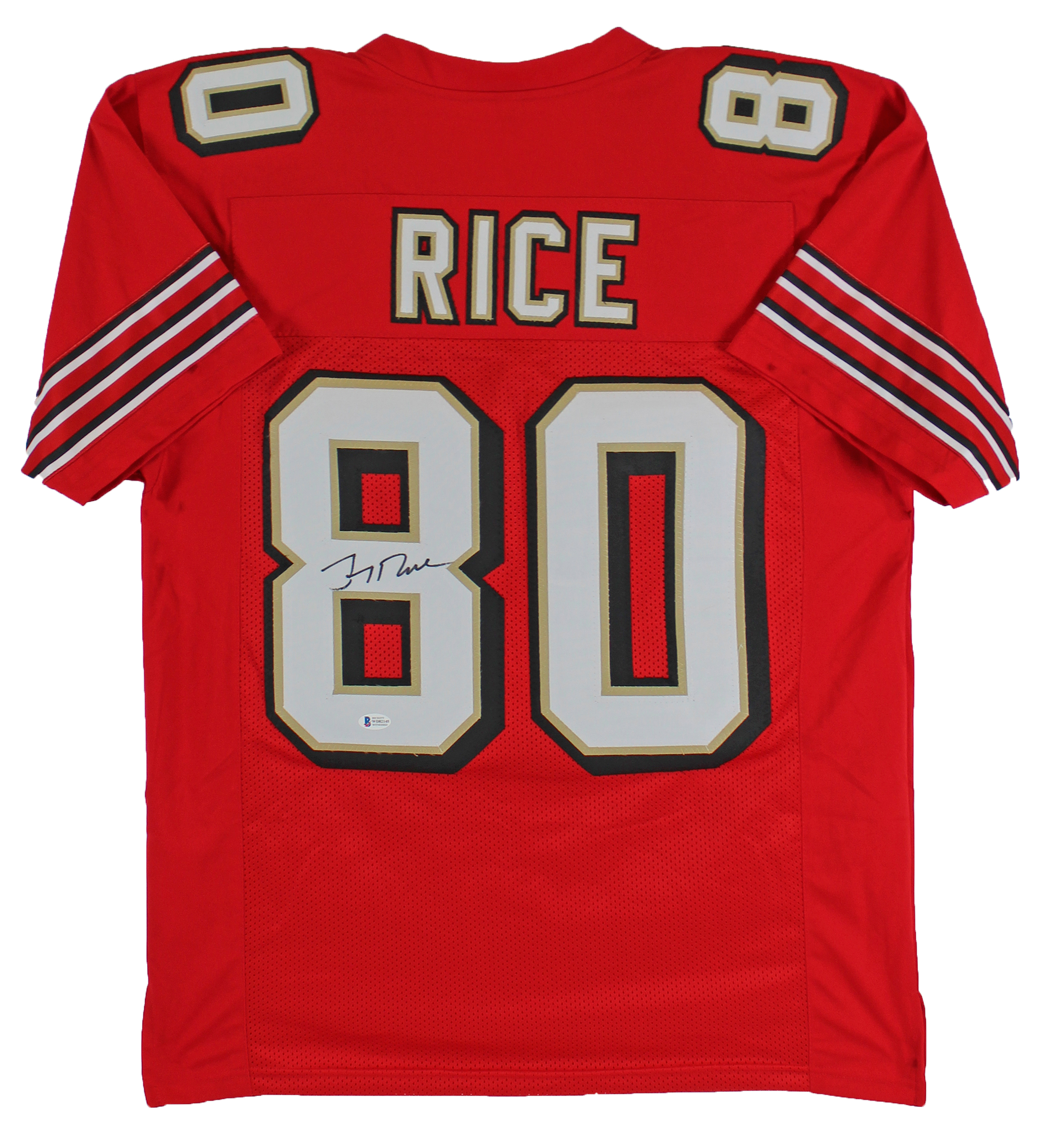 Jerry Rice Authentic Signed Red Pro Style Jersey w/ Drop shadow BAS Witnessed
