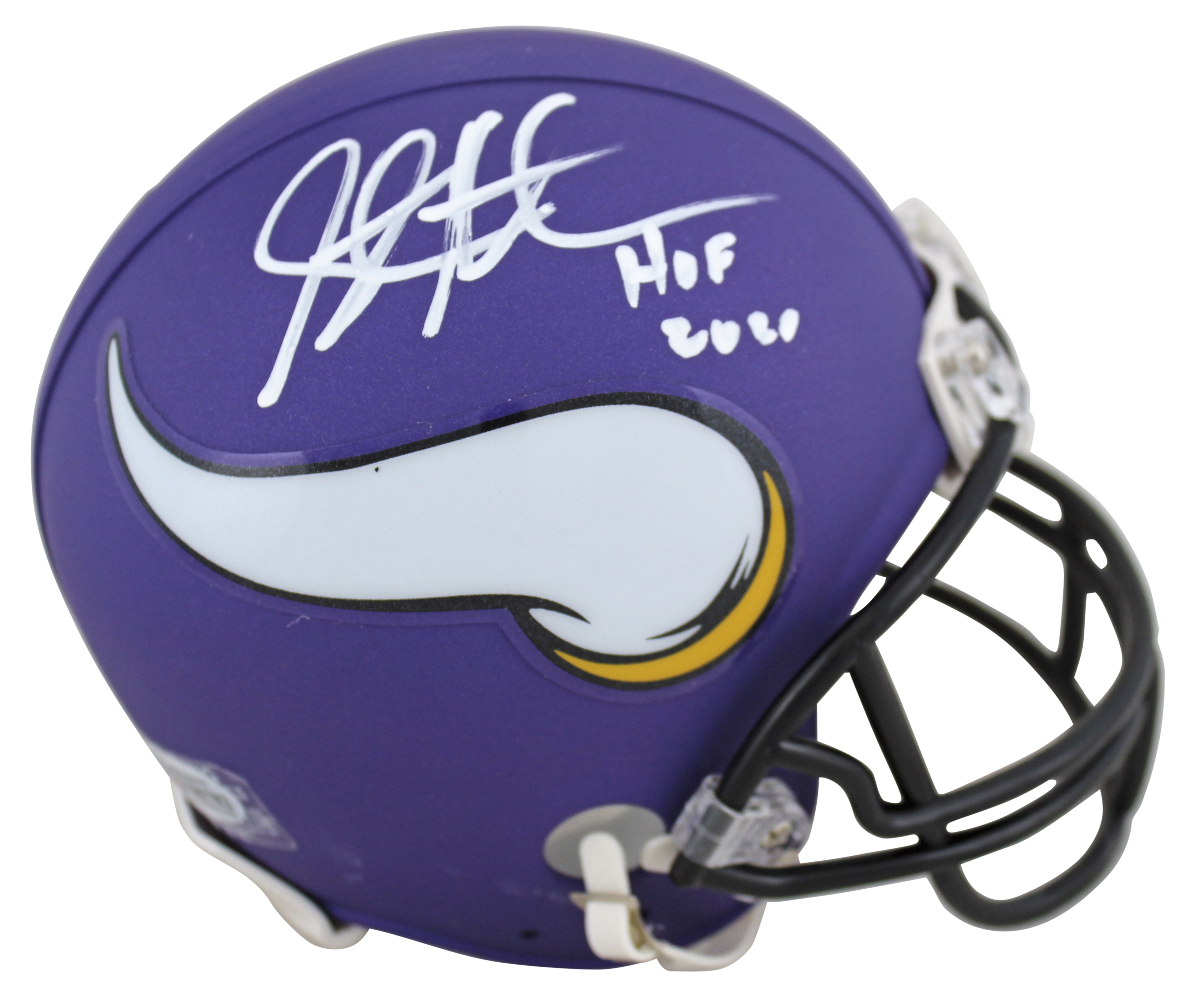 Vikings Steve Hutchinson "HOF 2020" Signed Purple Rep Mini Helmet BAS
