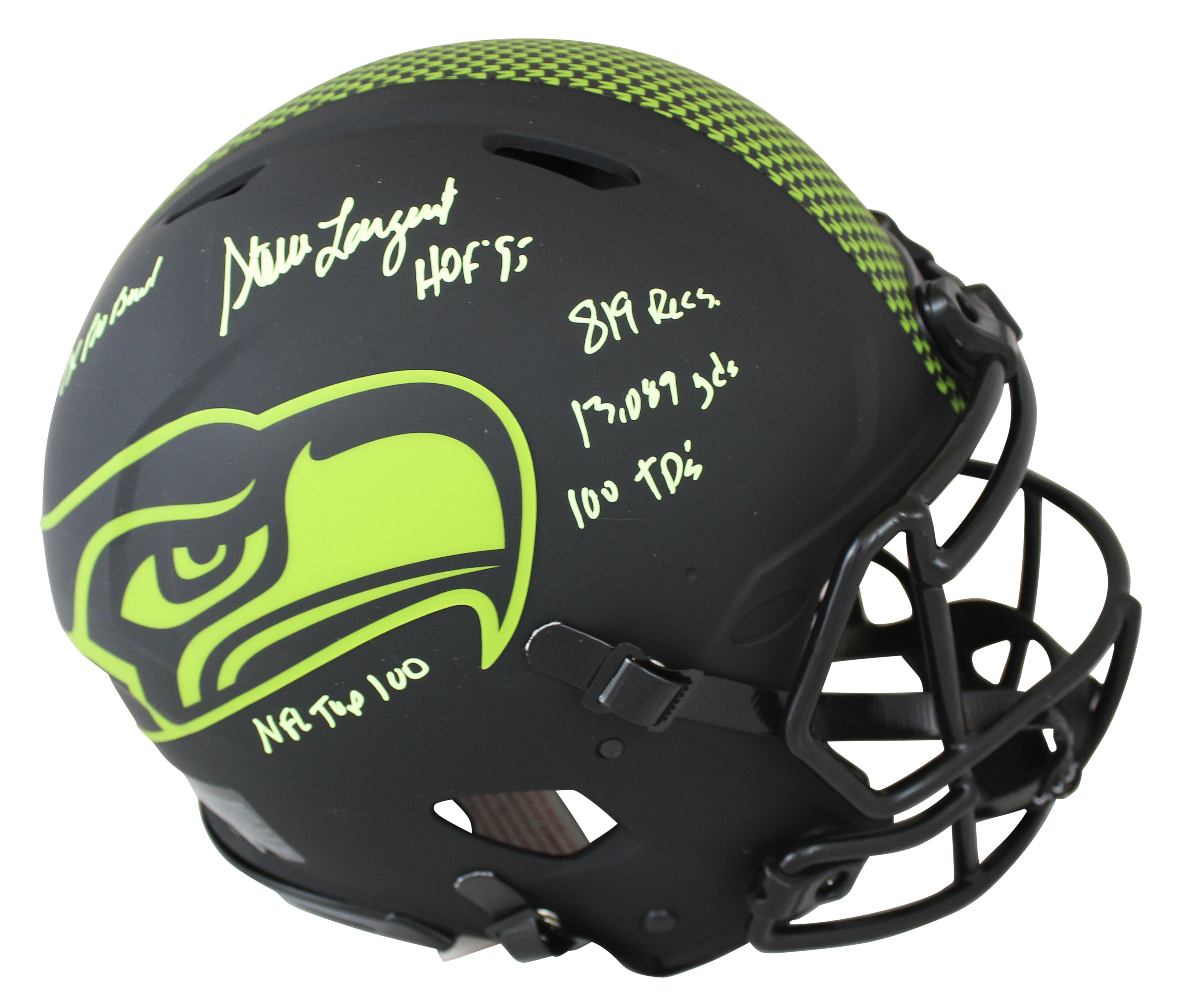 Seahawks Steve Largent "Career Stat" Signed Eclipse F/S Speed Proline Helmet BAS