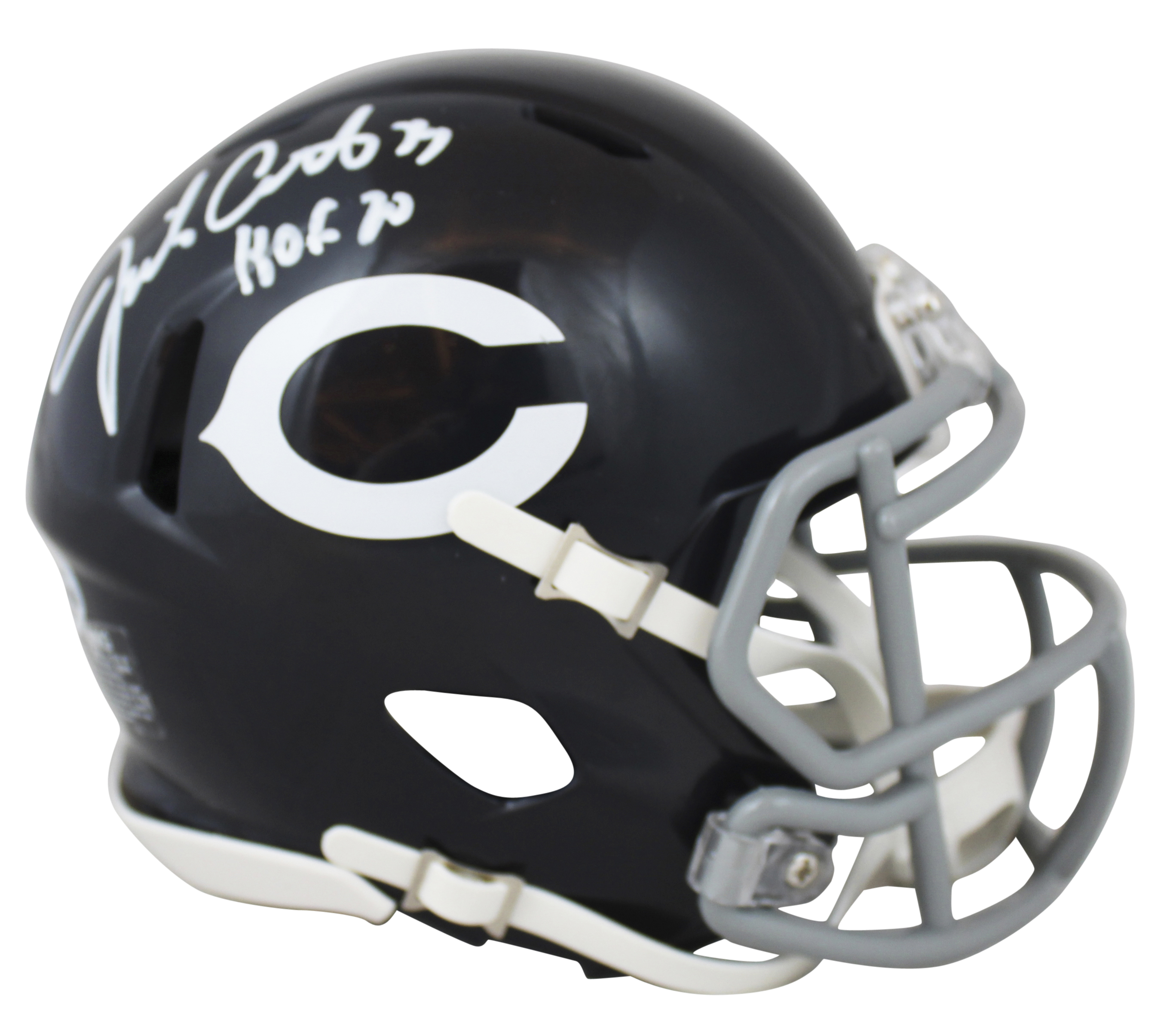 Bears Jim Covert HOF 20 Signed 60's Throwback Logo Speed Mini Helmet BAS Witness