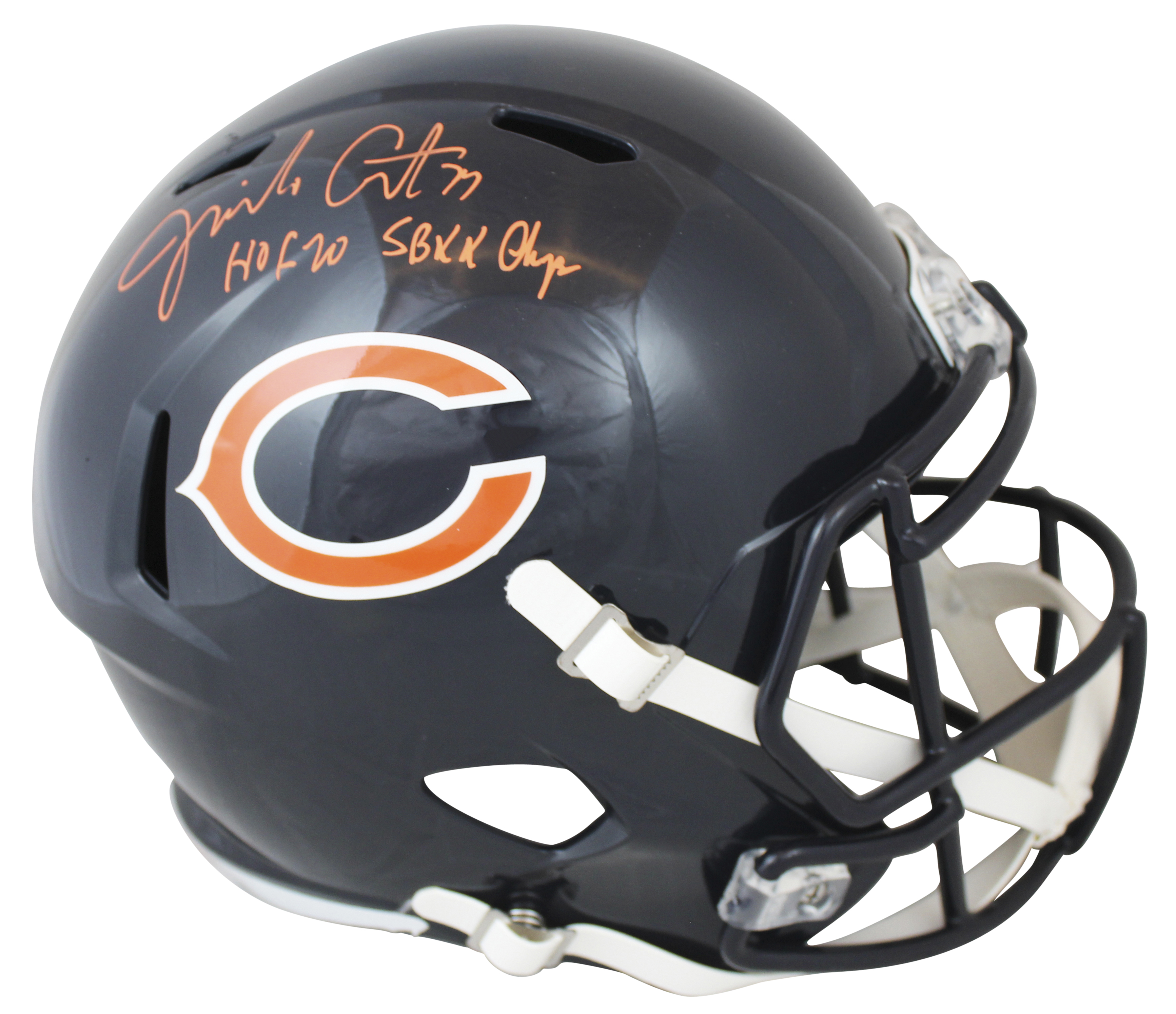 Bears Jim Covert "2x Insc" Signed Full Size Speed Rep Helmet BAS Witnessed