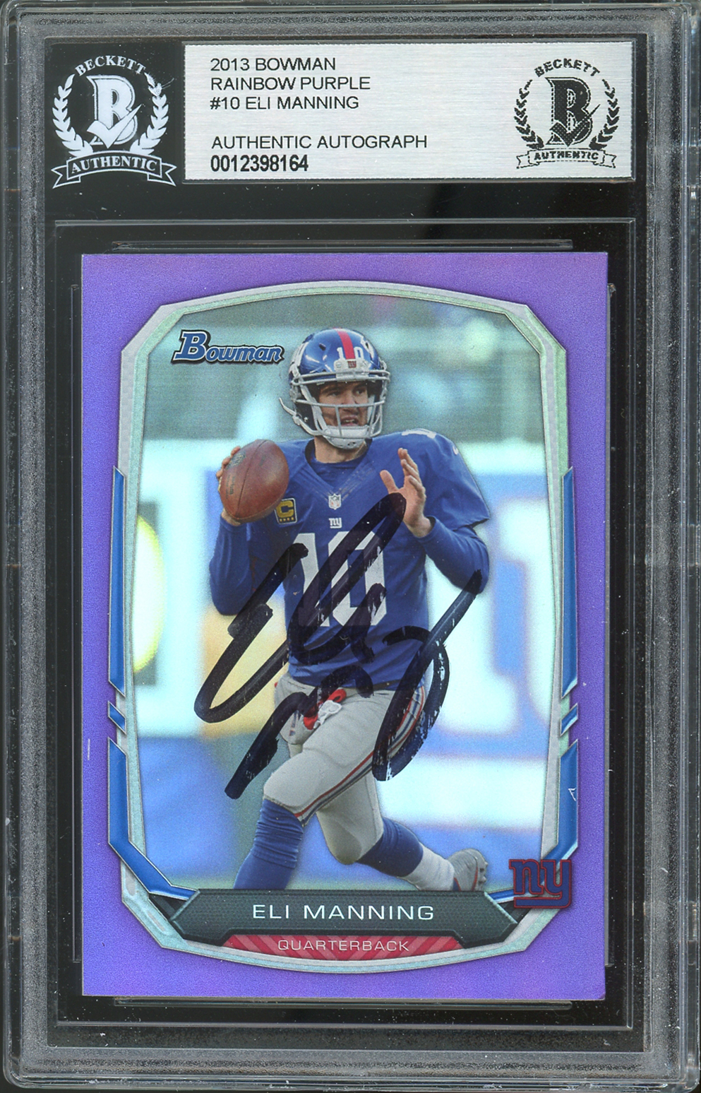 Giants Eli Manning Signed 2013 Bowman Rainbow Purple #10 Card BAS Slabbed