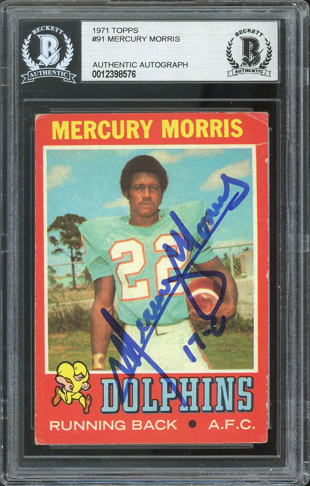 Dolphins Mercury Morris "17-0" Signed 1971 Topps #91 Card BAS Slabbed #12398576