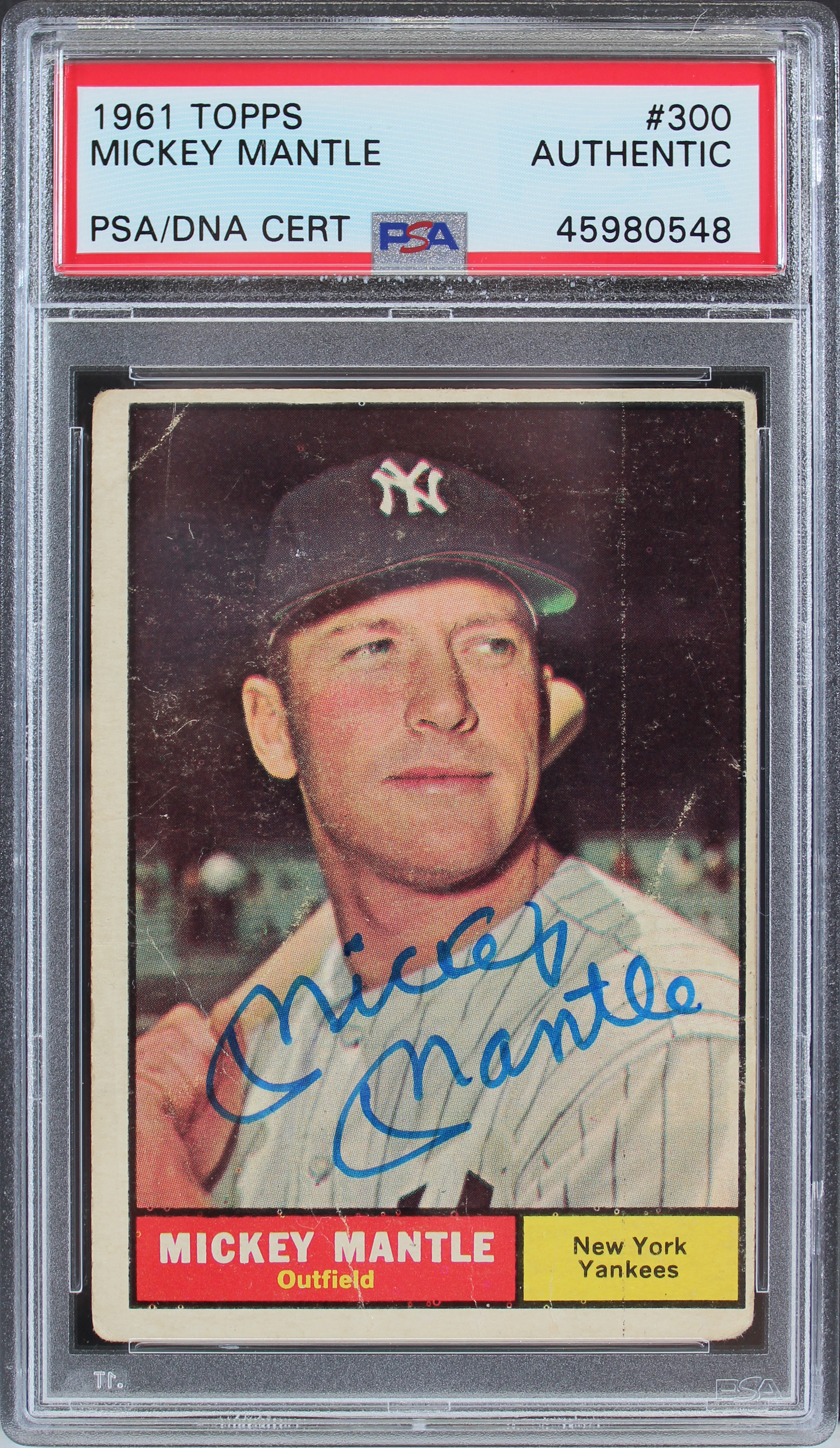 Yankees Mickey Mantle Authentic Signed 1961 Topps #300 Auto Card PSA/DNA Slabbed