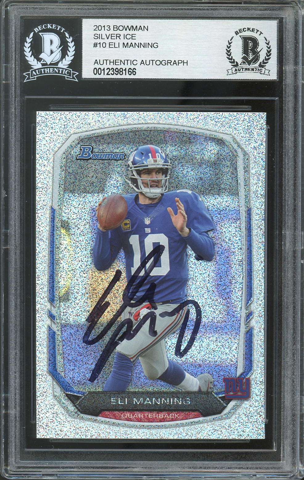 Giants Eli Manning Authentic Signed 2013 Bowman Silver Ice #10 Card BAS Slabbed