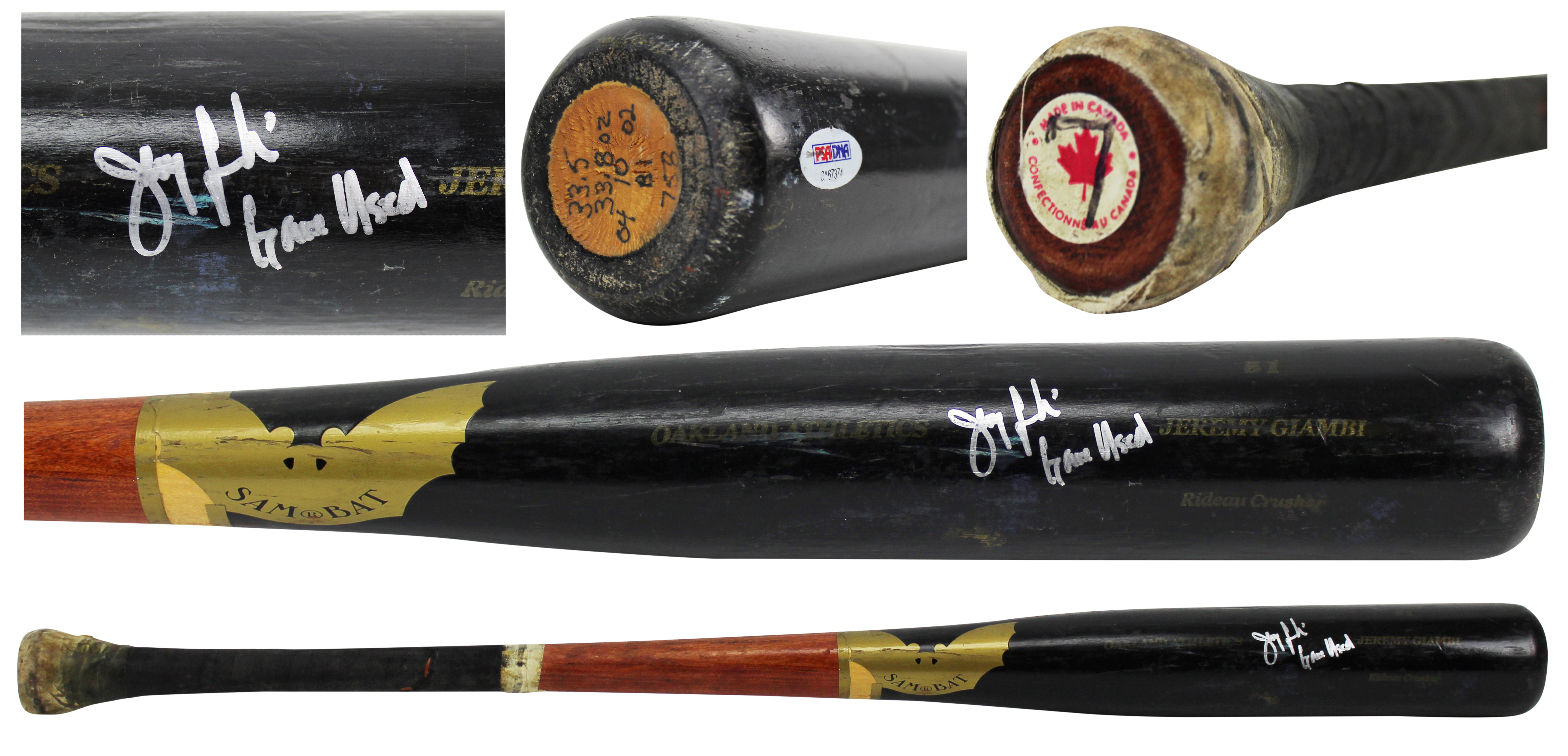 Athletics Jeremy Giambi "Game Used" Signed Sam Bat Pro Model Bat PSA #8A67374