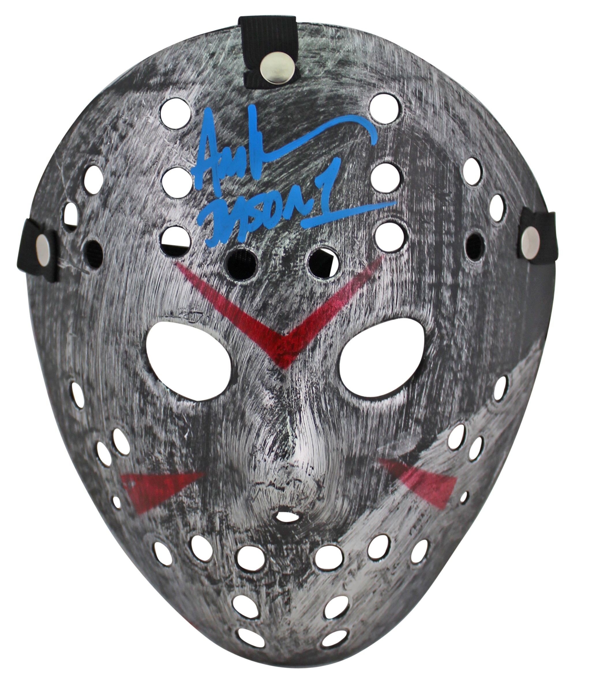 Ari Lehman "Jason > Freddy" Signed Silver Jason Mask w/ Blue Sig BAS Witnessed