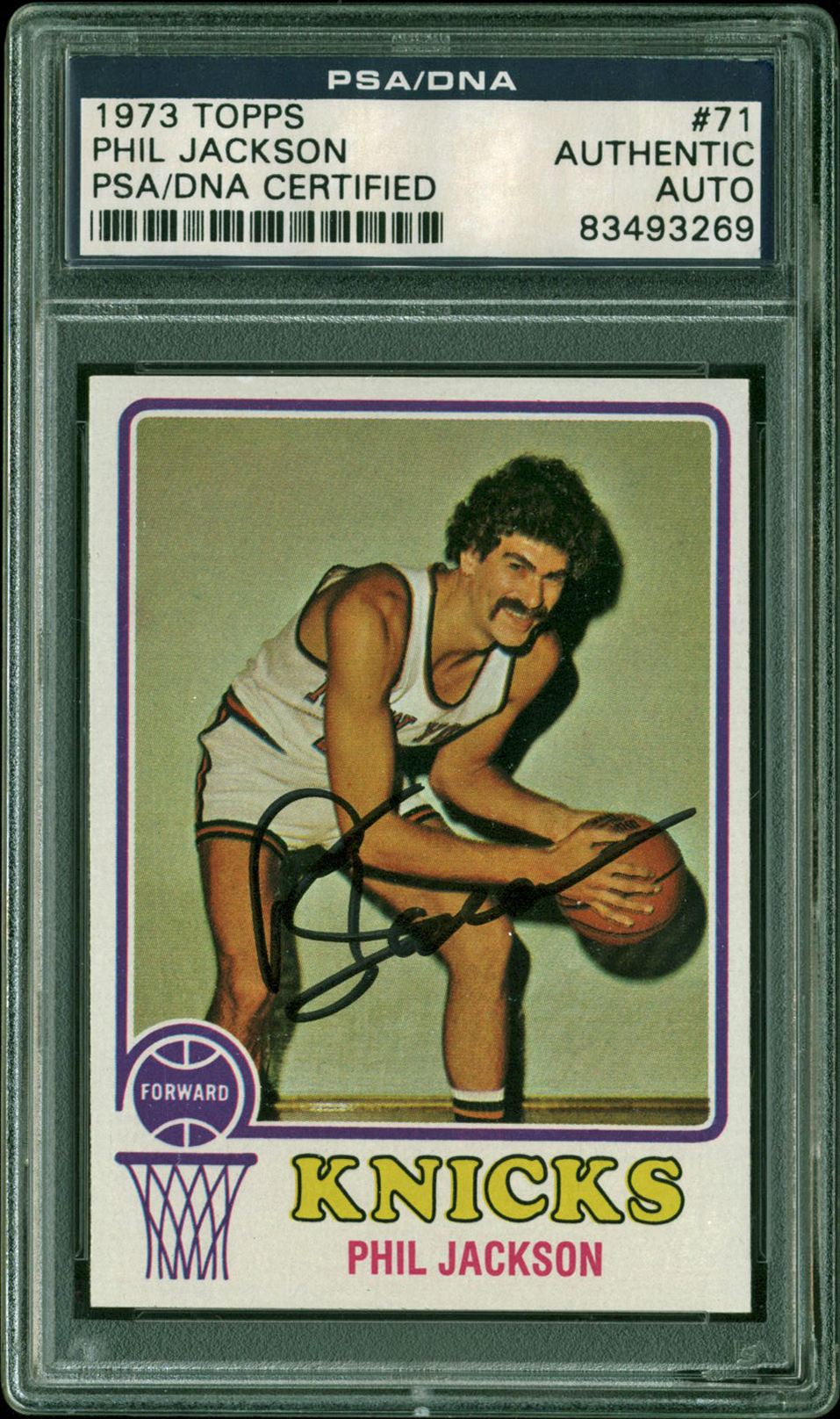 Knicks Phil Jackson Authentic Signed 1973 Topps #71 Card PSA/DNA Slabbed
