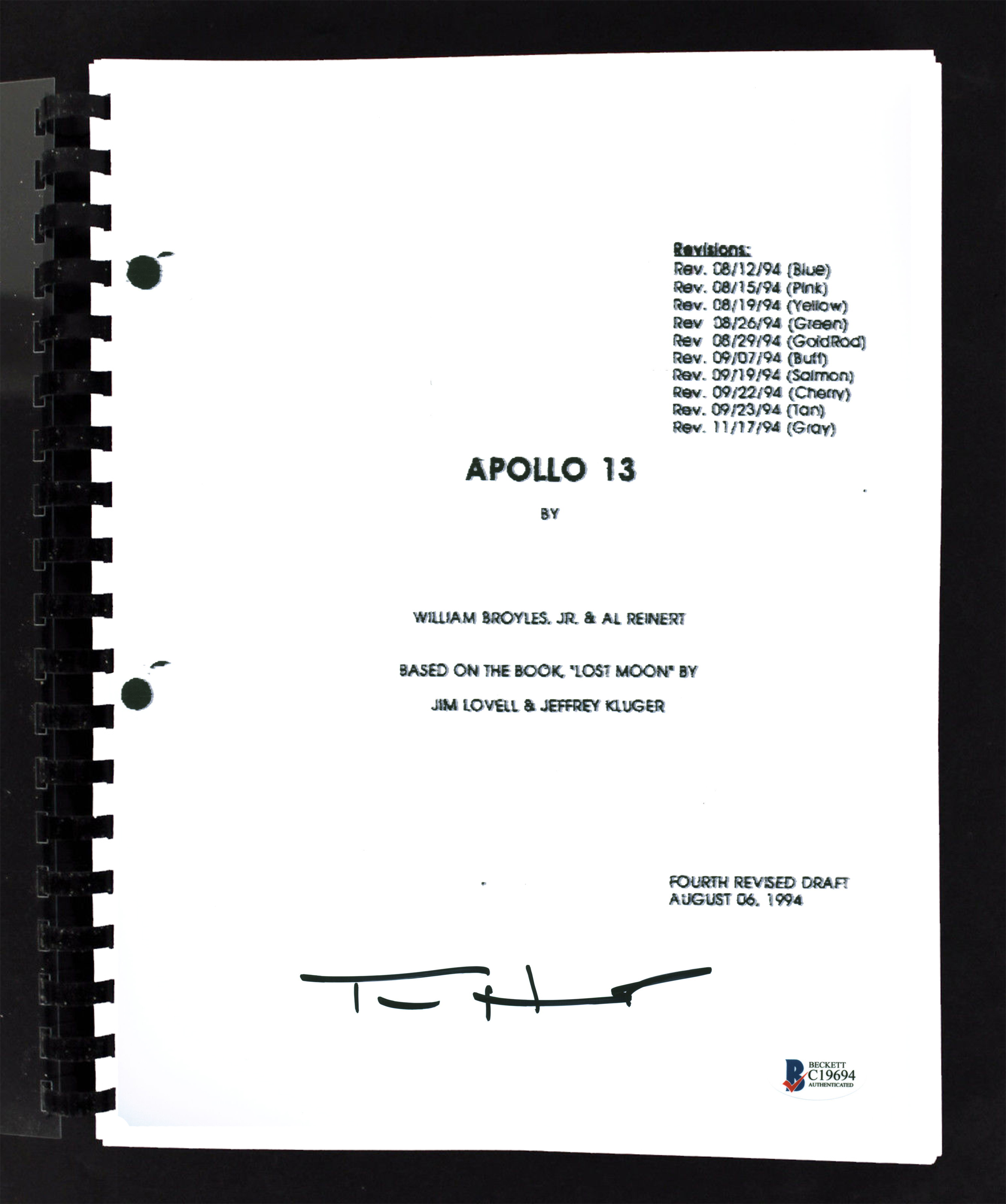 Tom Hanks Apollo 13 Authentic Signed Replica Movie Script Autographed BAS