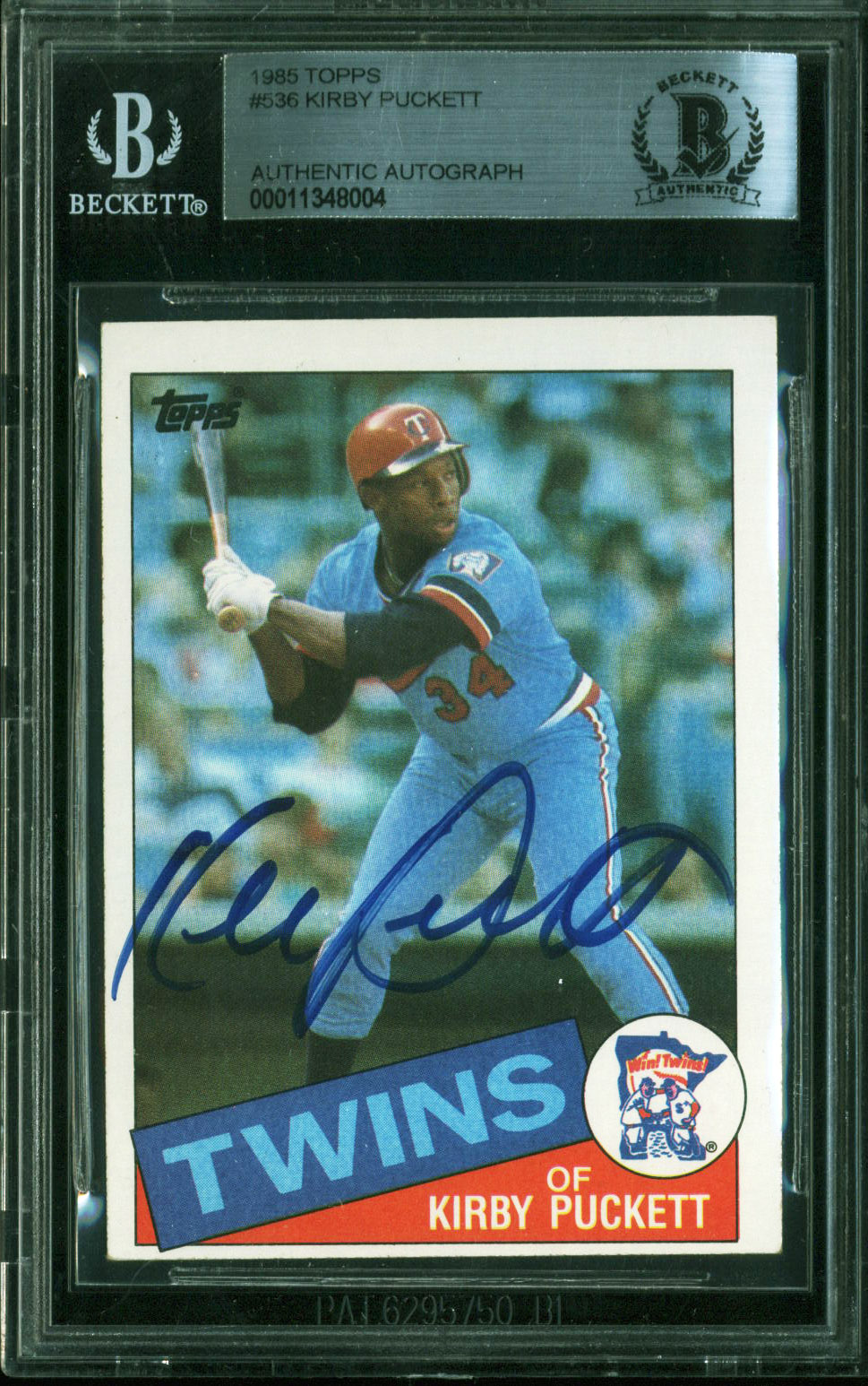Twins Kirby Puckett Signed 1985 Topps #536 Rookie Era Signature Card BAS Slabbed