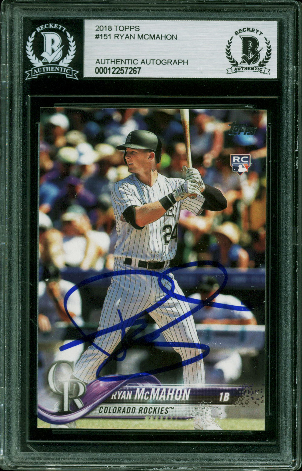 Rockies Ryan McMahon Authentic Signed 2018 Topps #151 Rookie Card BAS Slabbed