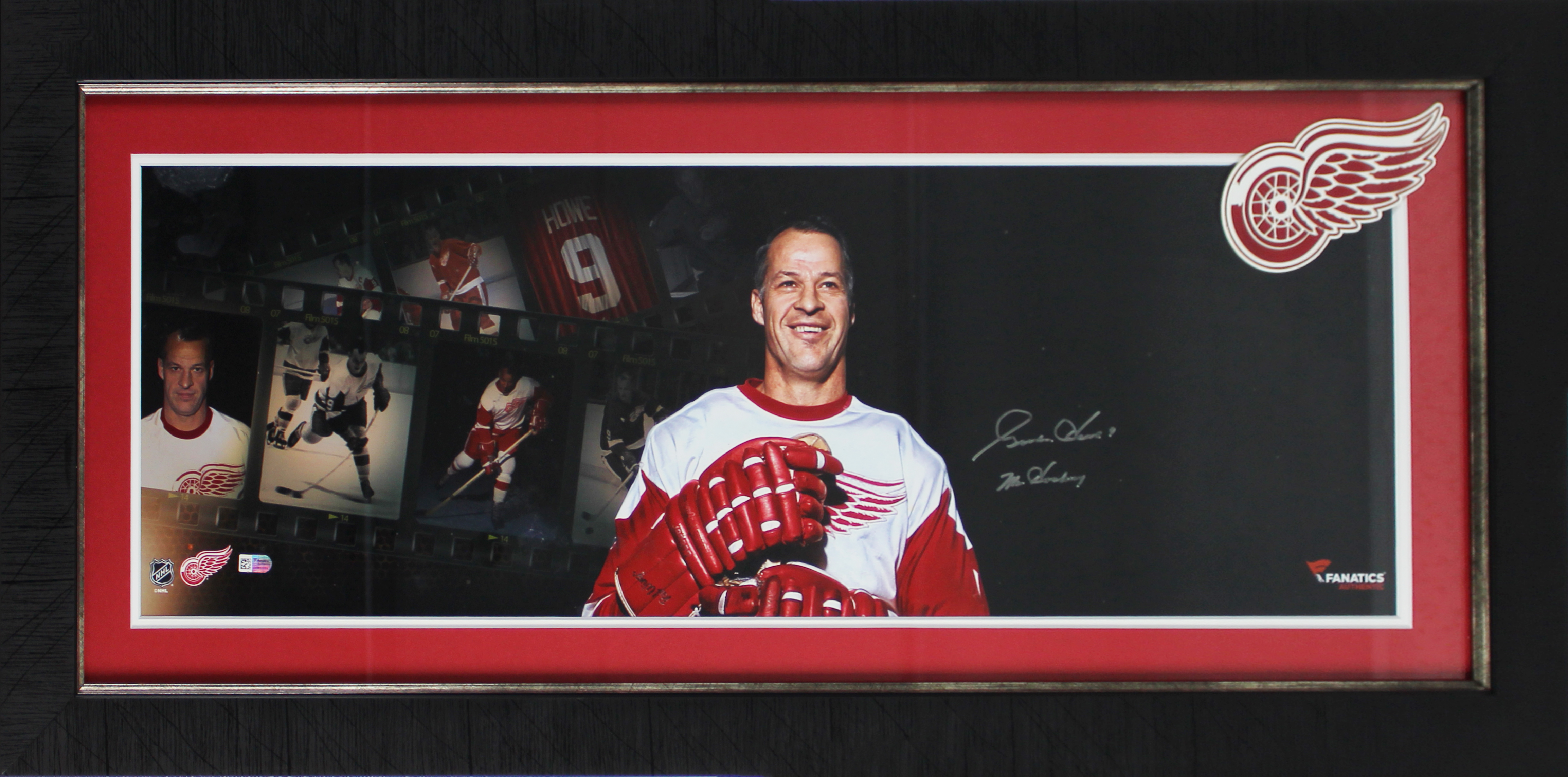 Red Wings Gordie Howe "Mr Hockey" Signed Framed 10x30 Panoramic Photo Fanatics 1