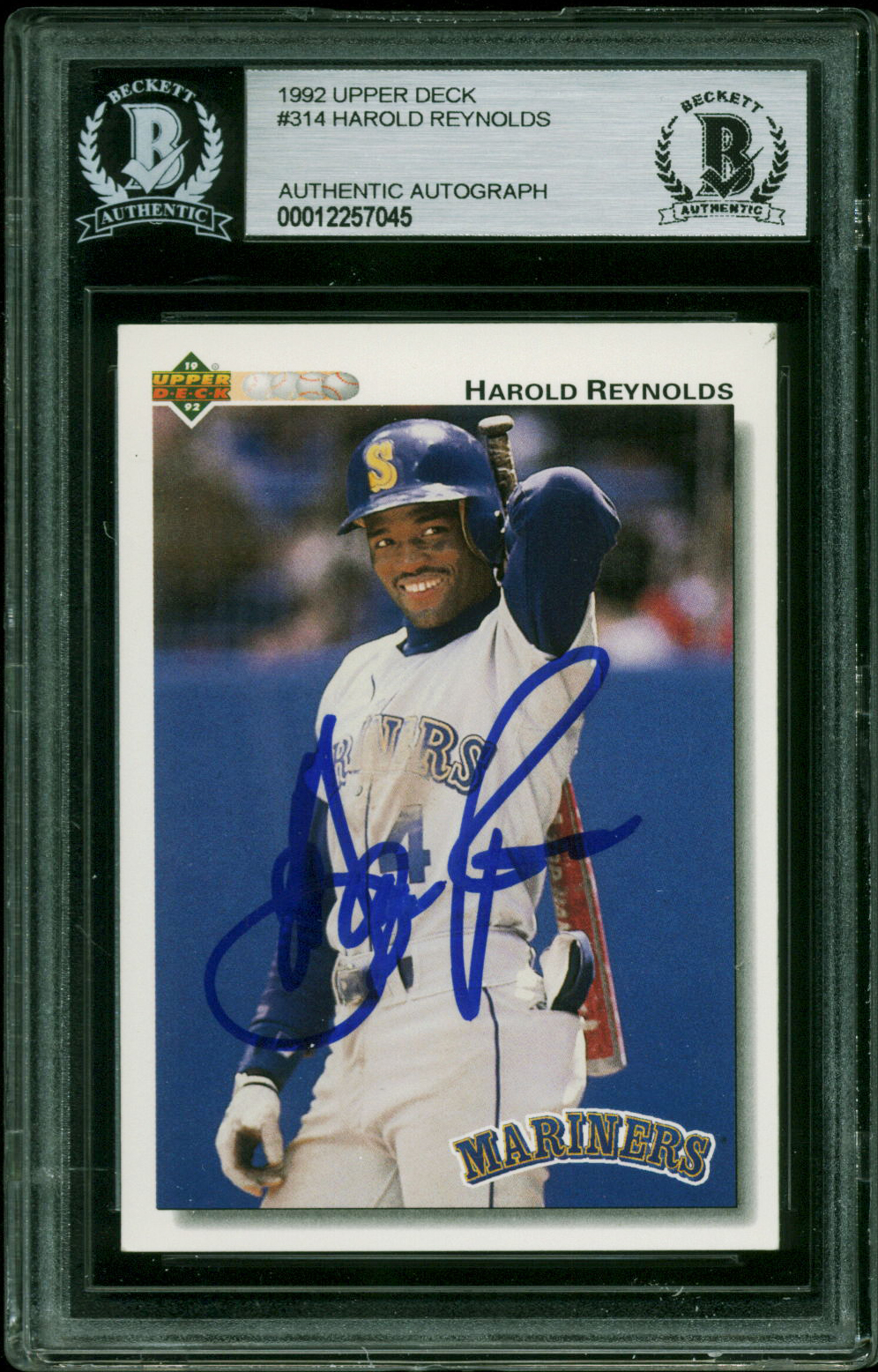 Mariners Harold Reynolds Authentic Signed 1992 Upper Deck #314 Card BAS Slabbed