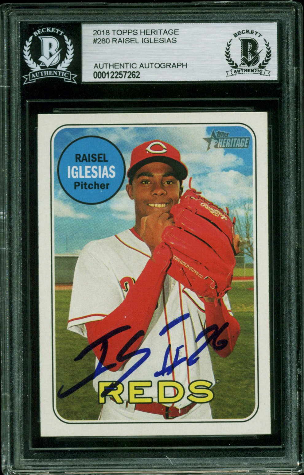 Reds Raisel Iglesias Authentic Signed 2018 Topps Heritage #280 Card BAS Slabbed