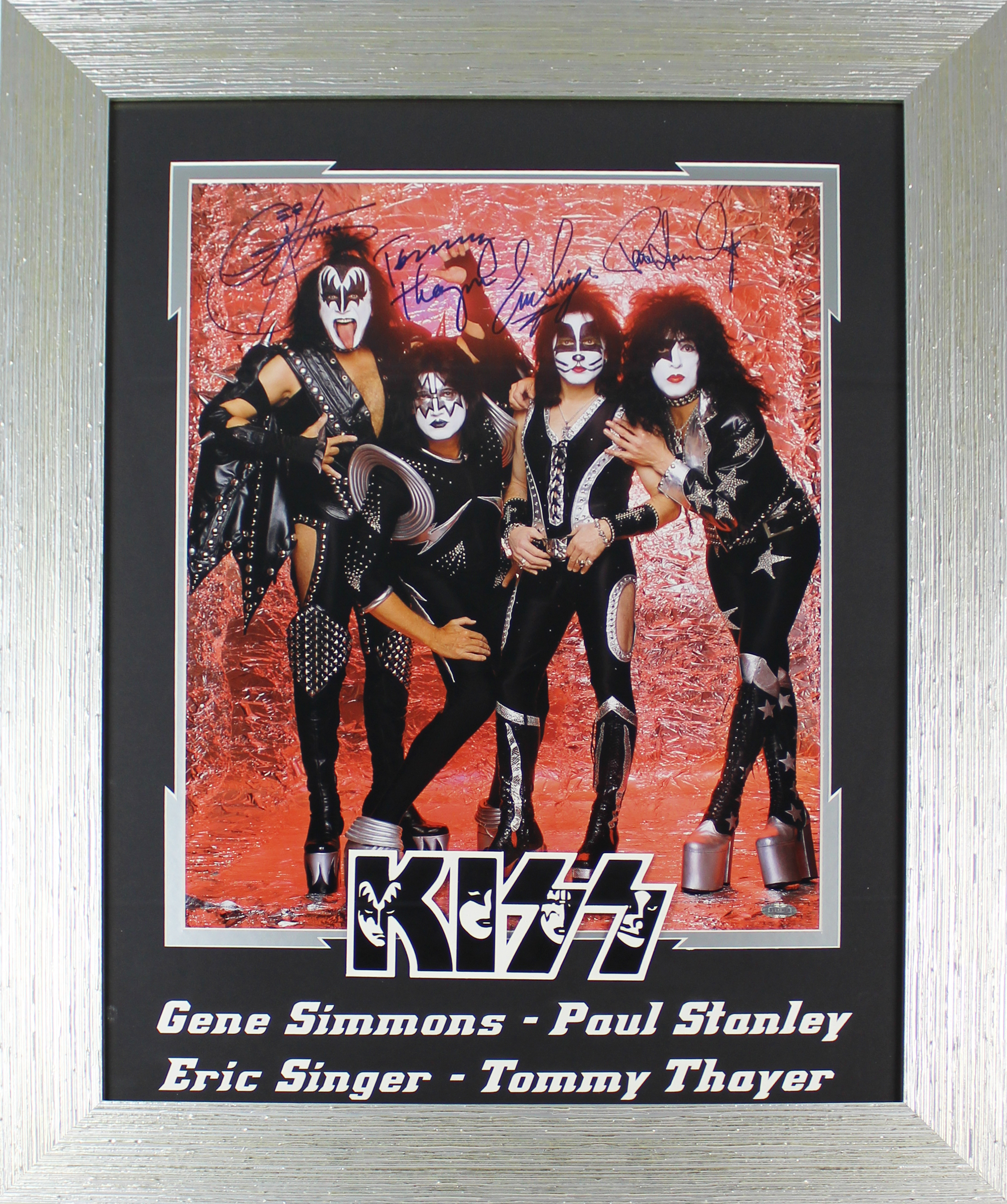 Kiss( (4) Simmons, Stanley, Thayer & Singer Signed 16x20 Framed Photo Steiner