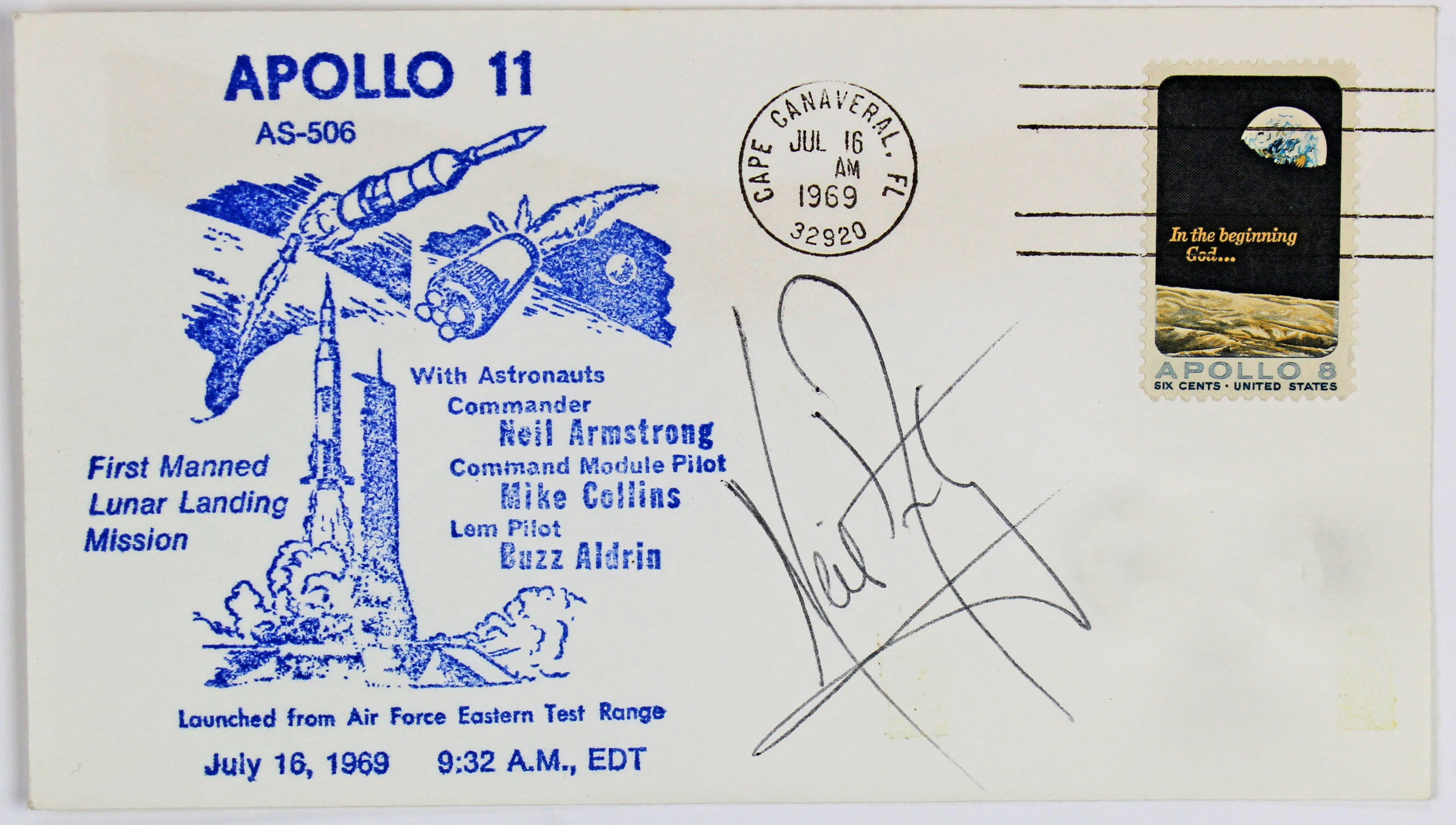 Neil Armstrong Apollo 11 Signed First Day Cover Postmarked July 16, 1969 PSA/DNA