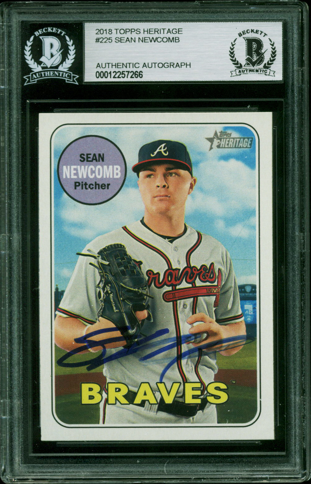 Braves Sean Newcomb Authentic Signed 2018 Topps Heritage #225 Card BAS Slabbed