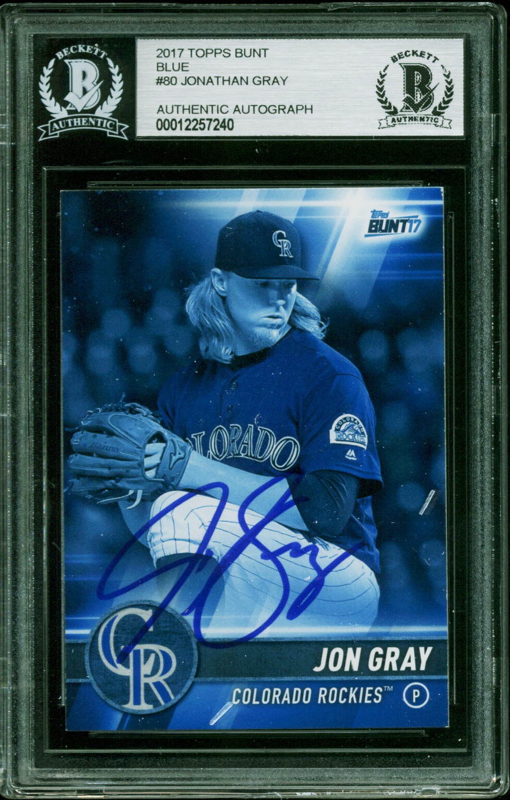 Rockies Jonathan Gray Authentic Signed 2017 Topps Bunt Blue #80 Card BAS Slabbed