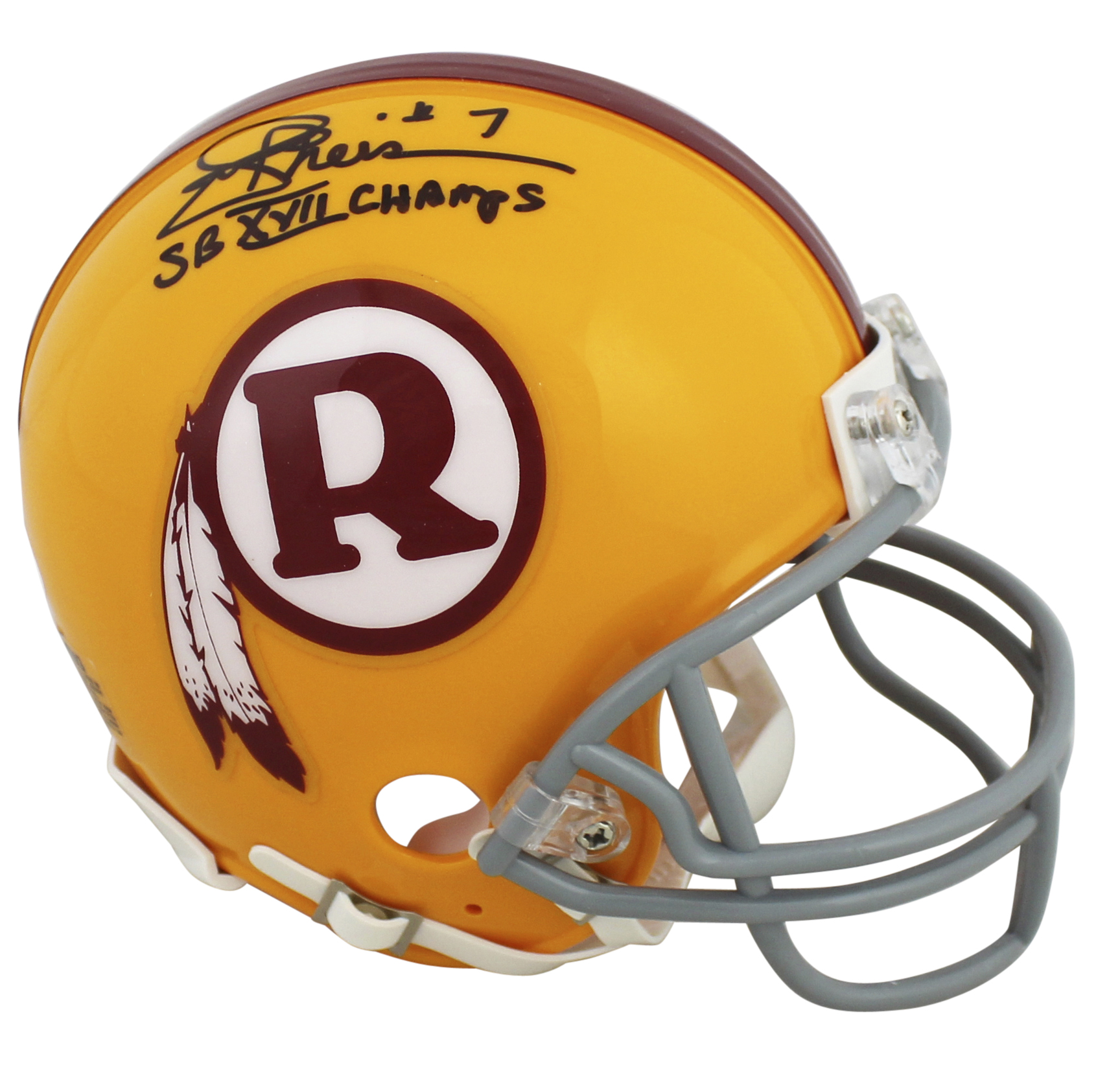 Redskins Joe Theismann "SB XVII Champs" Signed Yellow TB Rep Mini Helmet JSA Wit