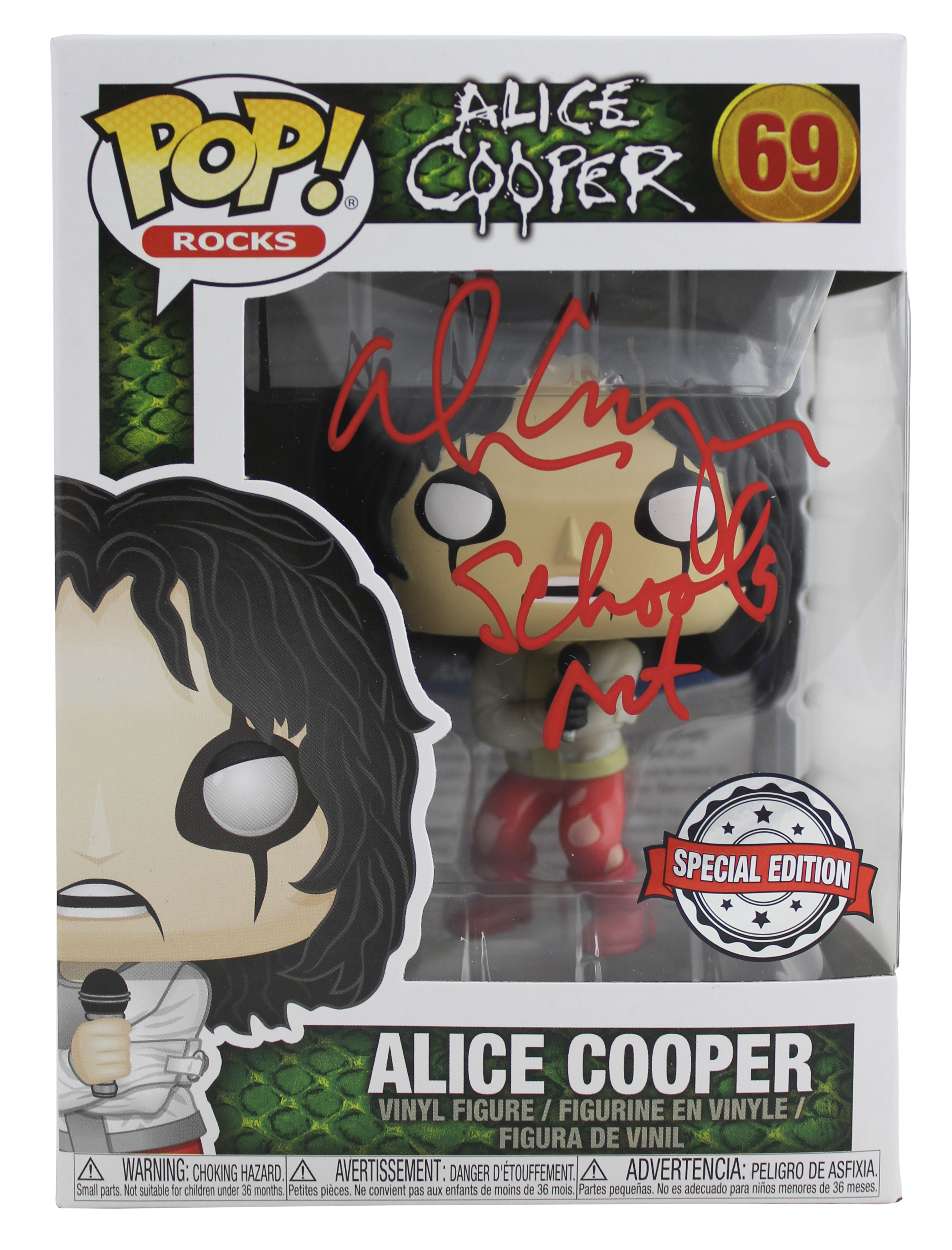 Alice Cooper "Schools Out" Signed #69 Funko Pop Vinyl Figure w/ Red Sig BAS Wit