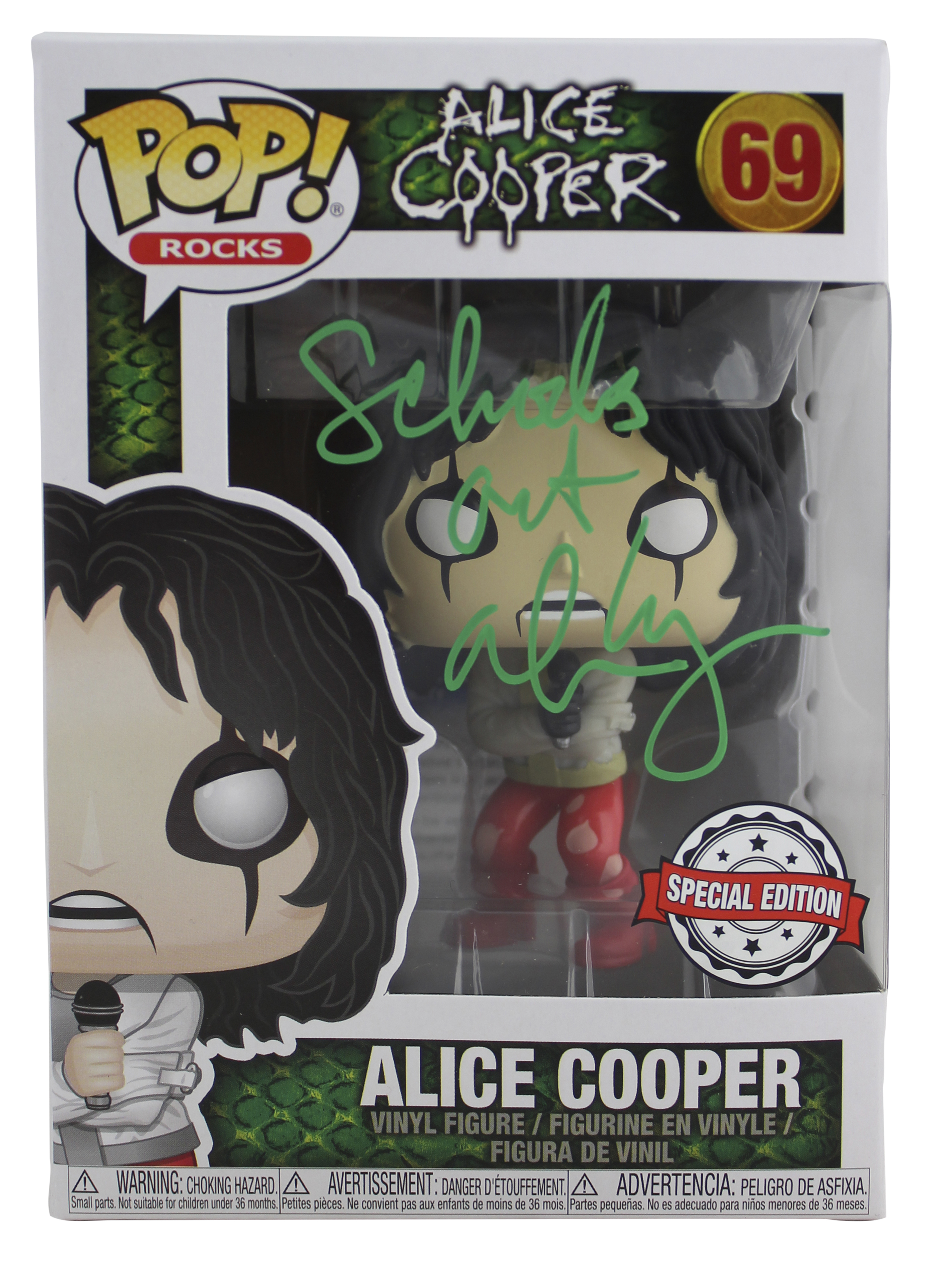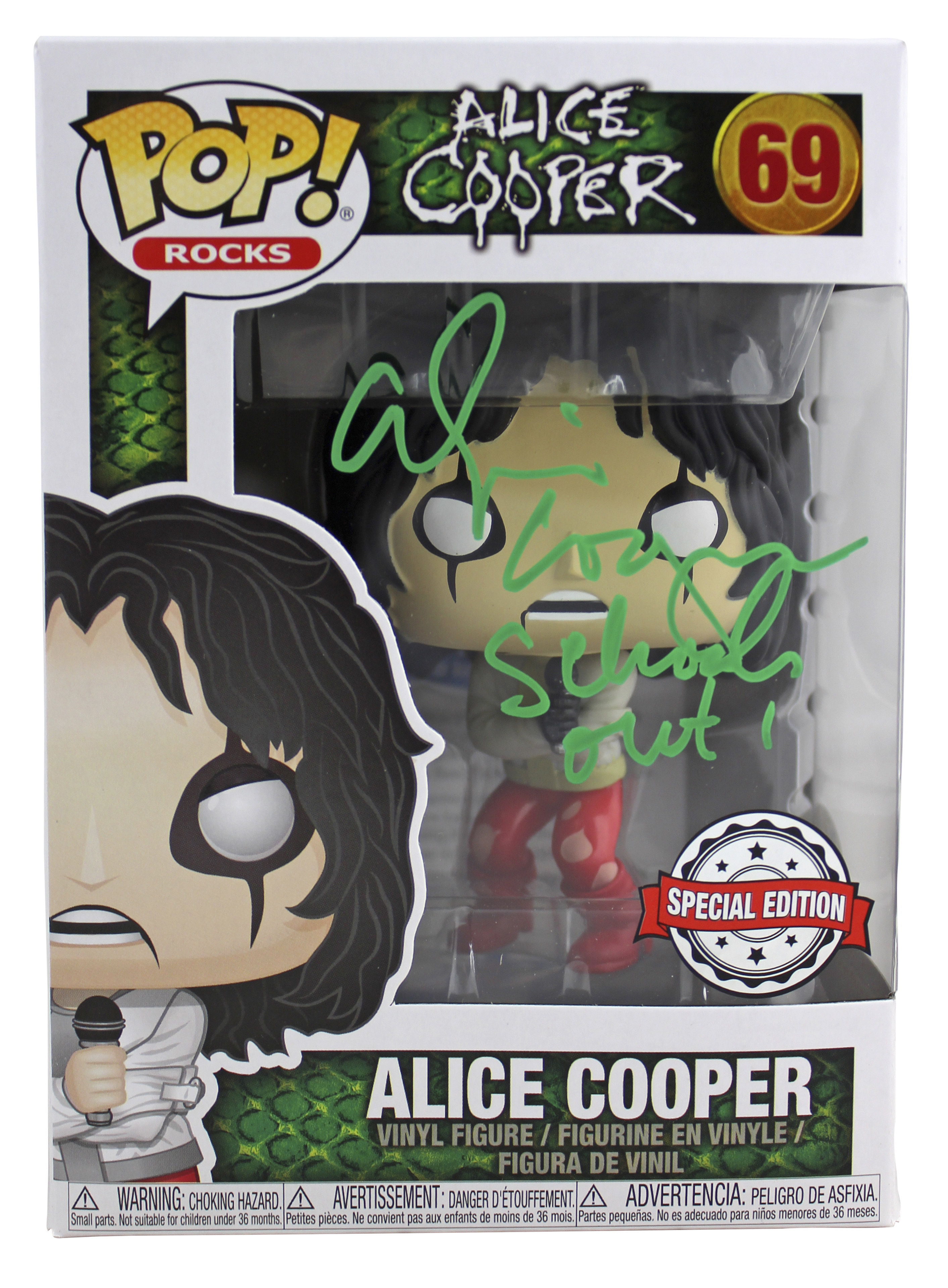 Alice Cooper "Schools Out" Signed #69 Funko Pop Vinyl Figure w/ Green Sig BAS