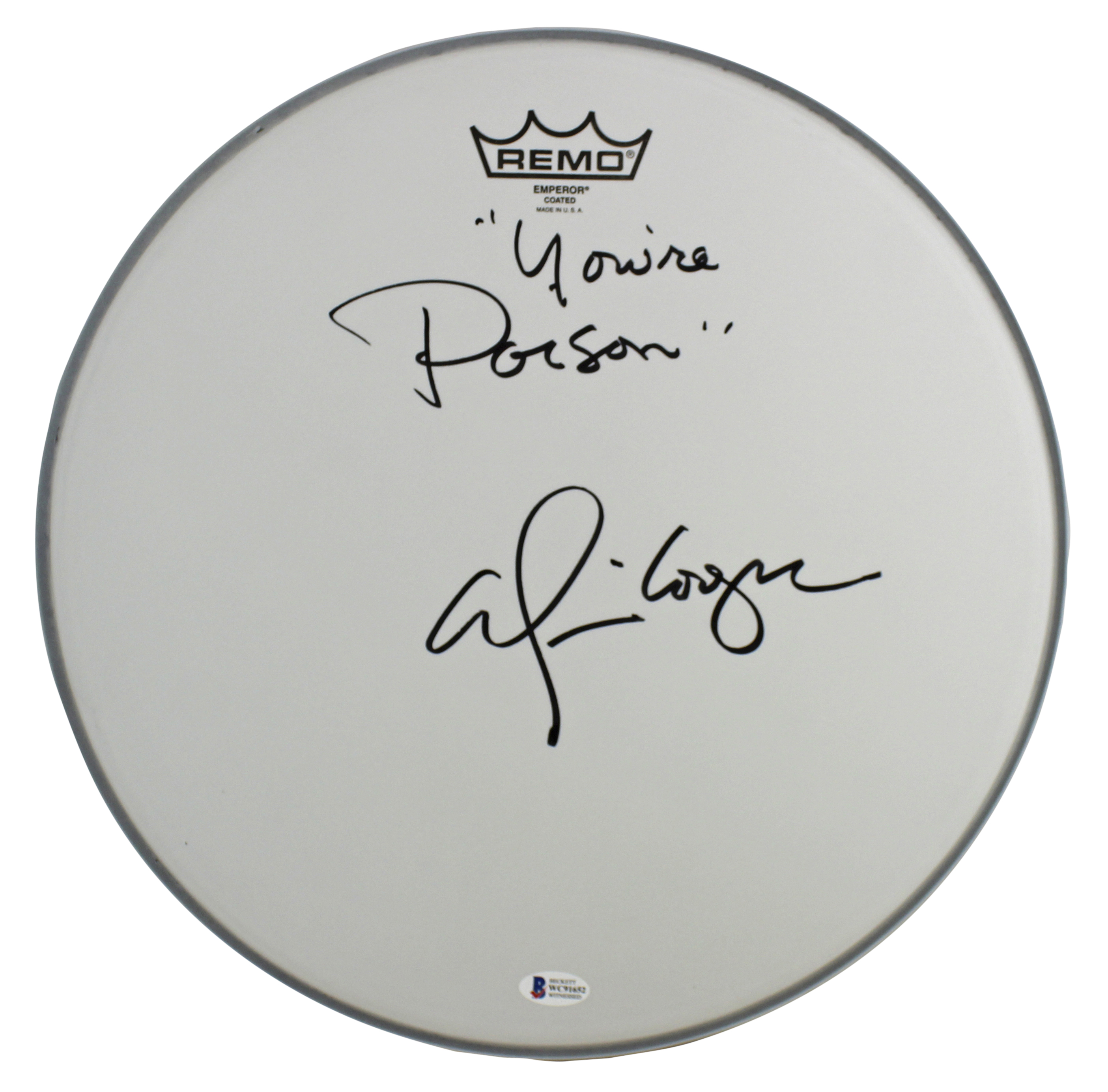Alice Cooper You're Poison Signed 14 Inch Remo Drum Head BAS Witnessed #WC91652