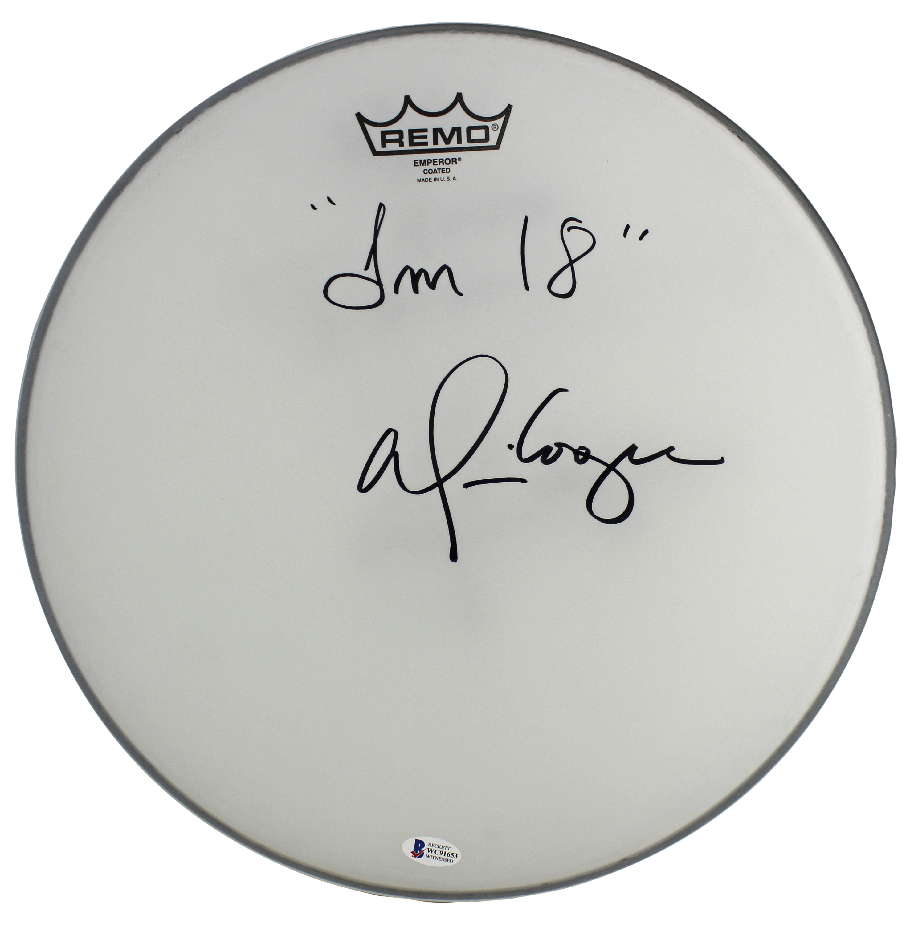 Alice Cooper "I'm 18" Signed 14 Inch Remo Drum Head BAS Witnessed #WC91653