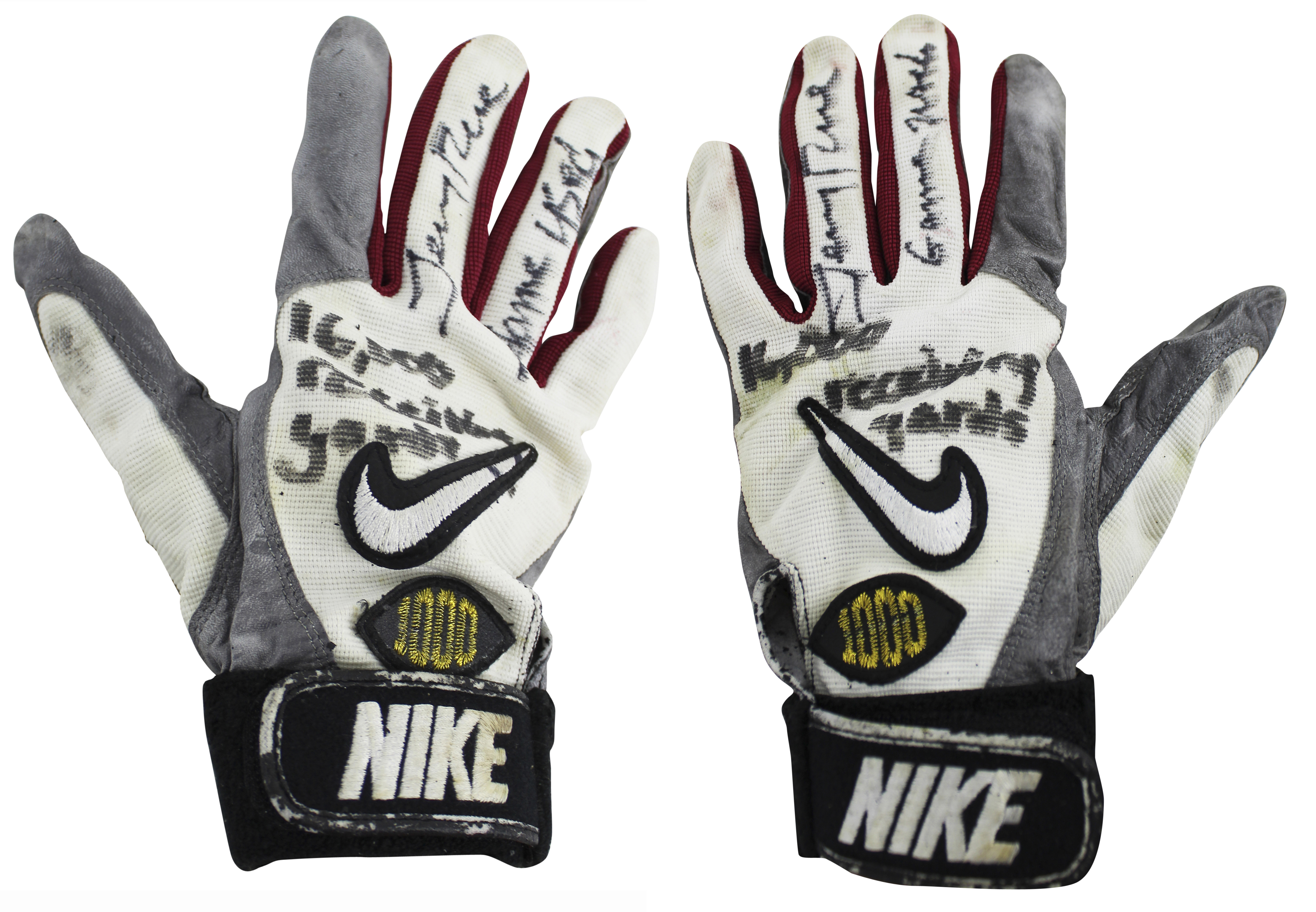 49ers Jerry Rice Signed "Game Used 16,000 Rec Yards" Inscribed Nike Gloves BAS