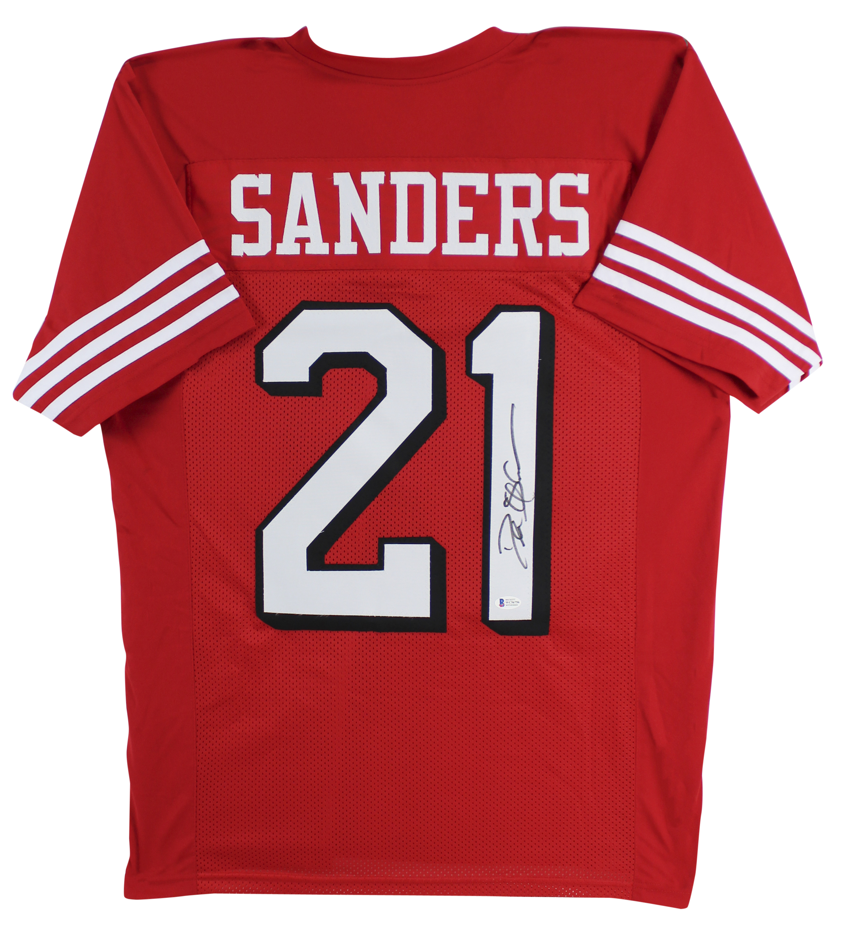 Deion Sanders Authentic Signed Red Pro Style Jersey w/Drop Shadow BAS Witnessed